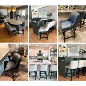This swivel counter stools with the silver nailhead trims design fits seamlessly into nearly any decor, lending a modern feel to your kitchen or bar area. It’s a nice kitchen counter stool, ideal for extra seating, accommodating guests at gatherings, and ideal for everyday use. CHITA swivel wood counter stools comes with tools and all necessary hardware for a quick and easy assembly.