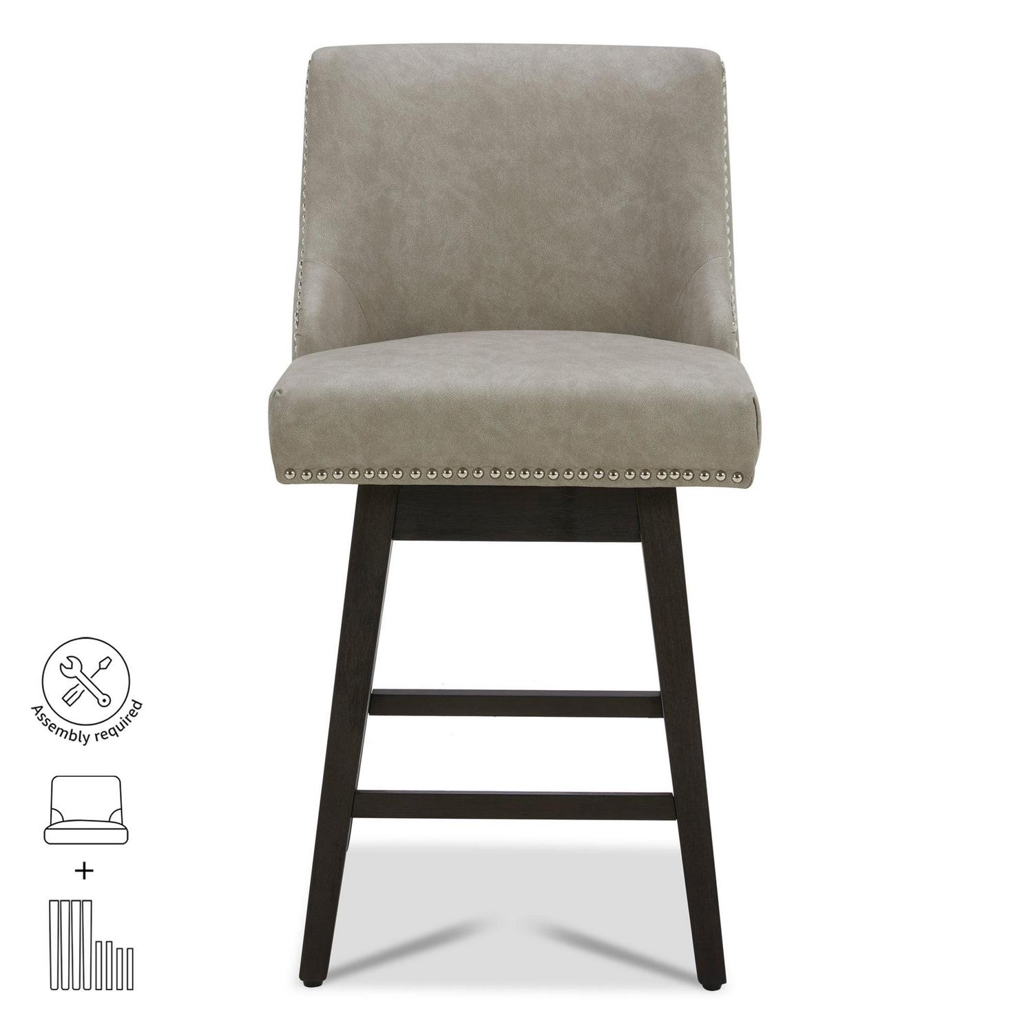 CHITA 26 inch Faux Leather Swivel Upholstered Counter Height Bar Stools with Full Back, Set of 2, Stone Gray