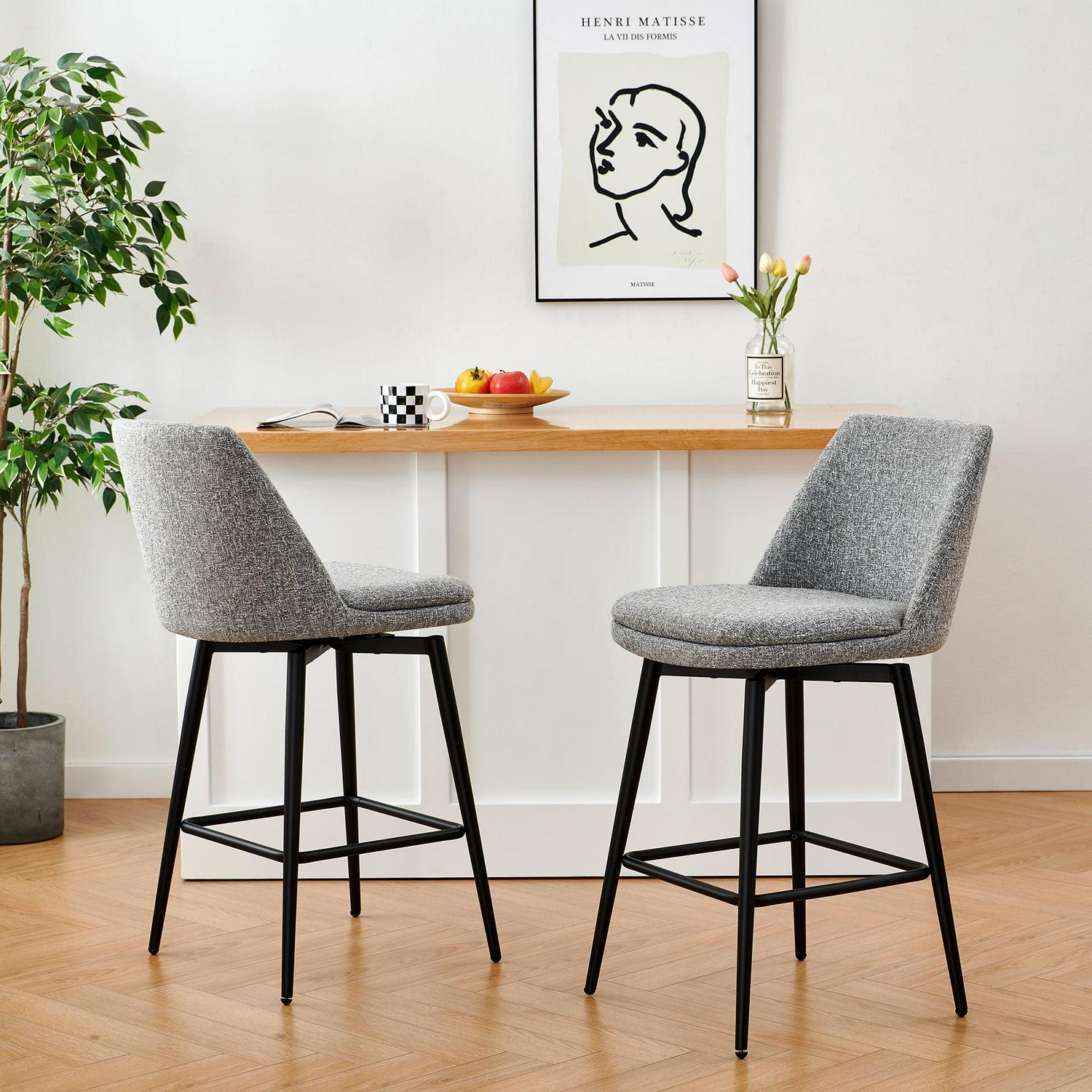 CHITA 27 inch Counter Height Swivel Bar Stools Low Back Set of 2, Metal Base, Fabric in Gray