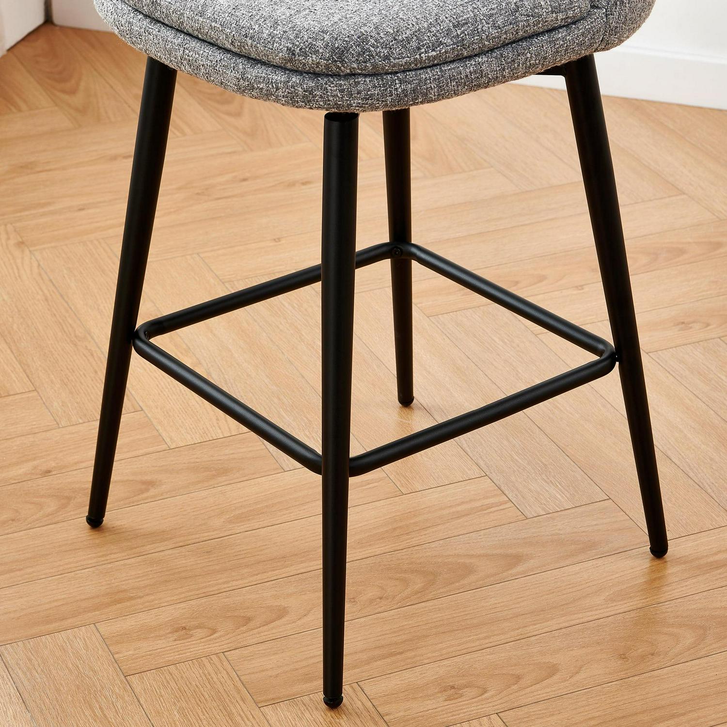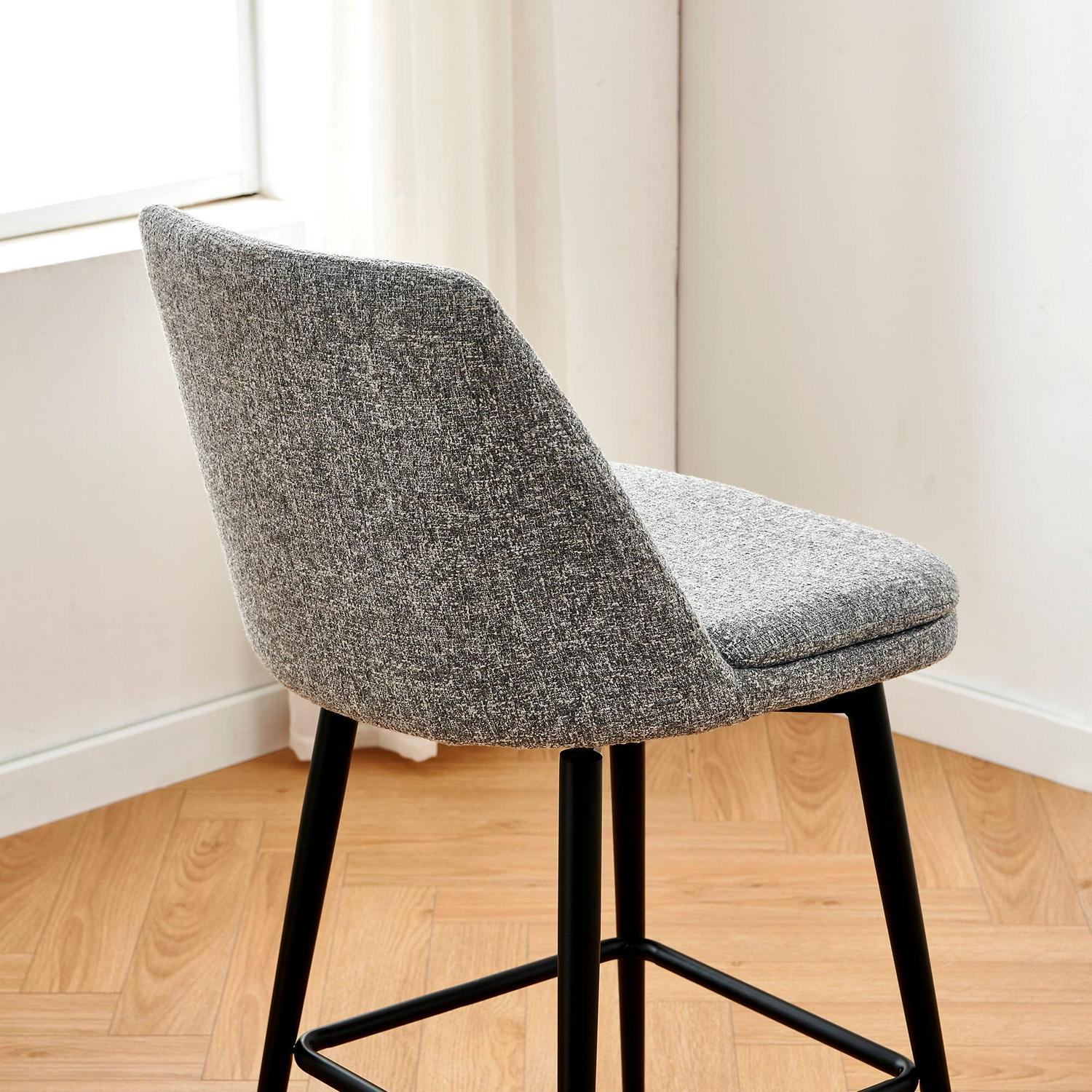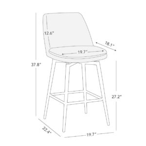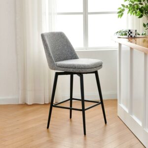 This CHITA counter height bar stools in Italian mid-century swivel design features a lightly curved back and a rounded, padded seat. The counter stool measures 27 inch sitting height, little higher but sits better, just right for any counter-high kitchen islands and stands ready to inspire over-the-counter conversation. 360-degree swivel plate maximizes your comfort and let you be a part of every conversation. High quality cover creates a plush and luxurious look that s perfect for formal and informal settings alike. Sturdy iron base in uncomplicated yet modern matte black finish ensures durability of the counter bar stool.