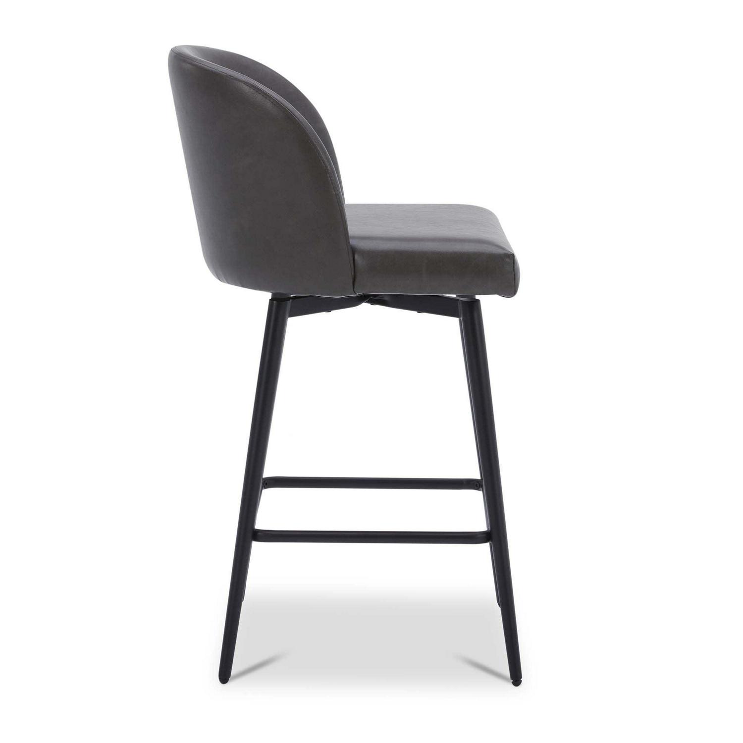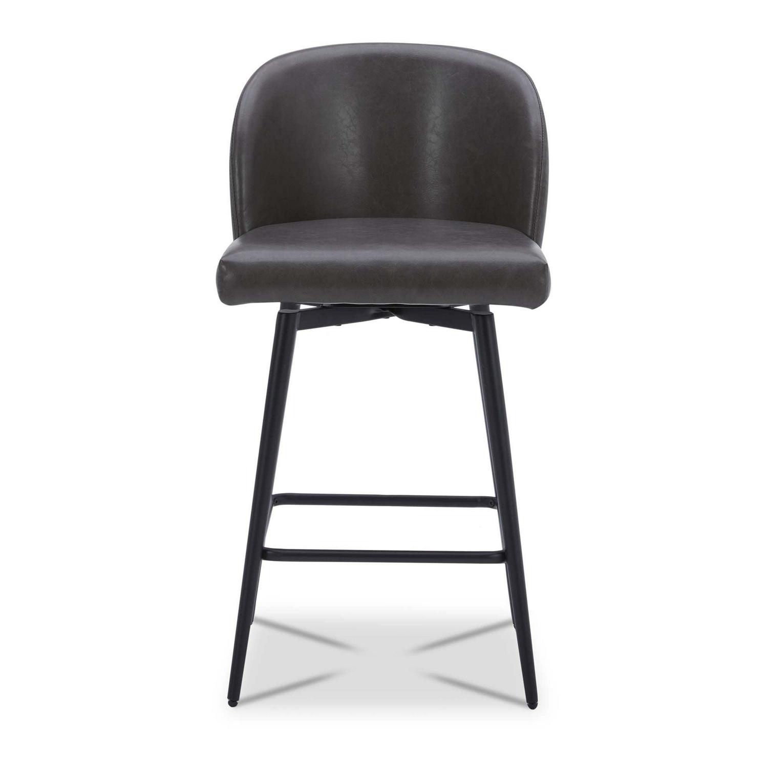 CHITA 27 Swivel Upholstered Counter Bar Stools Set of 2 with Back and Metal Legs, Faux Leather in Retro Gray