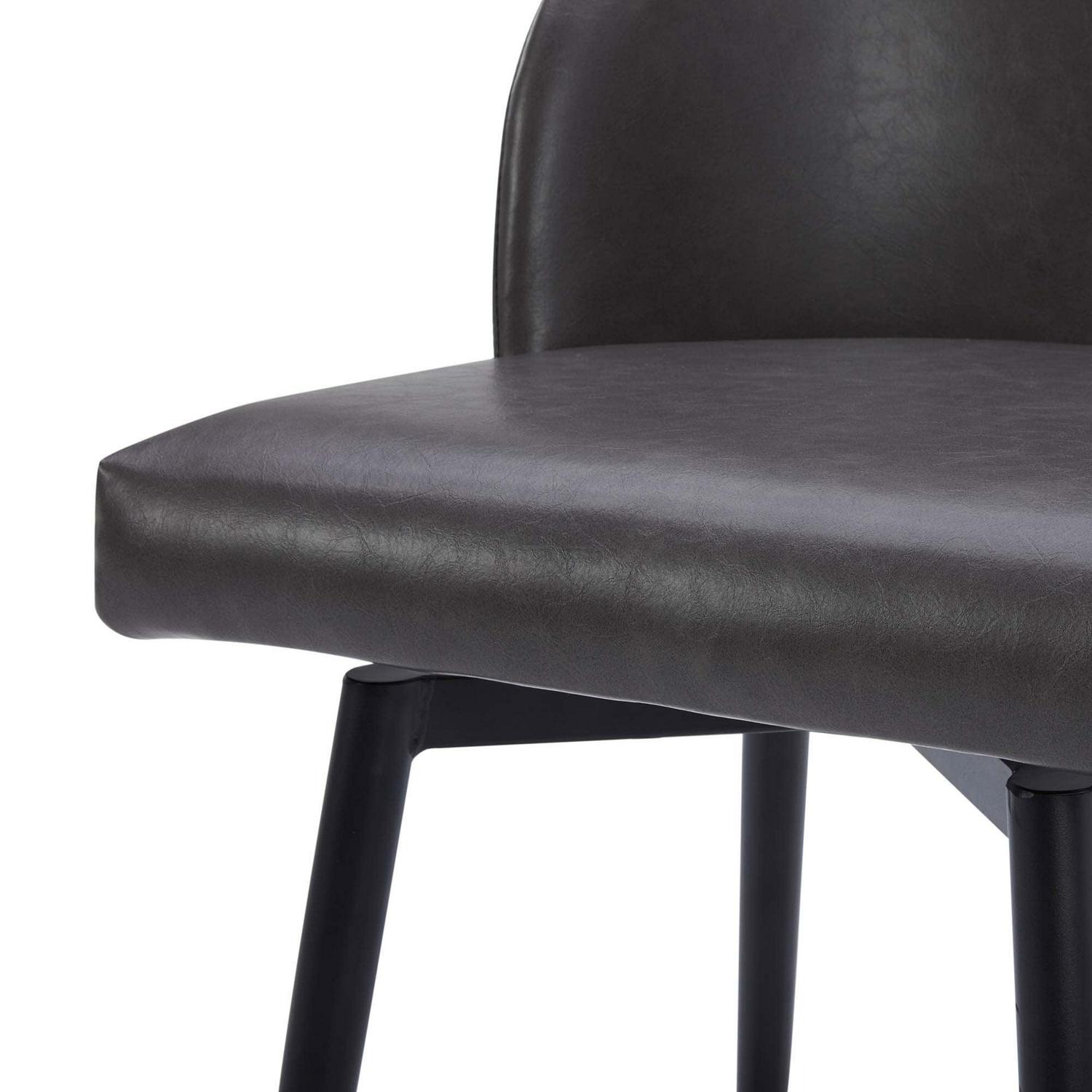 - Modern design fuses elements of curved lines and premium faux leather together with metal