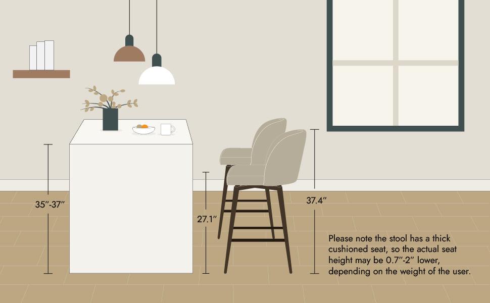 This CHITA counter height bar stool set of 2 are crafted with rounded shape and padded seat, along with 360-degree swivel plate. It maximizes your comfort and lets you be a part of every conversation. Upholstered in soft faux leather, plus high-resilient foam cushioning, the swivel bar stools in multiple colors will deliver a surprisingly comfortable sitting experience. Chair base is made of sturdy iron in uncomplicated yet modern matte black finish to ensure sturdiness and a weight capacity of 300 pounds. Simple assembly required for the swivel bar stools with back. If you have any questions, please contact our professional customer support team. We will give you a satisfactory solution.