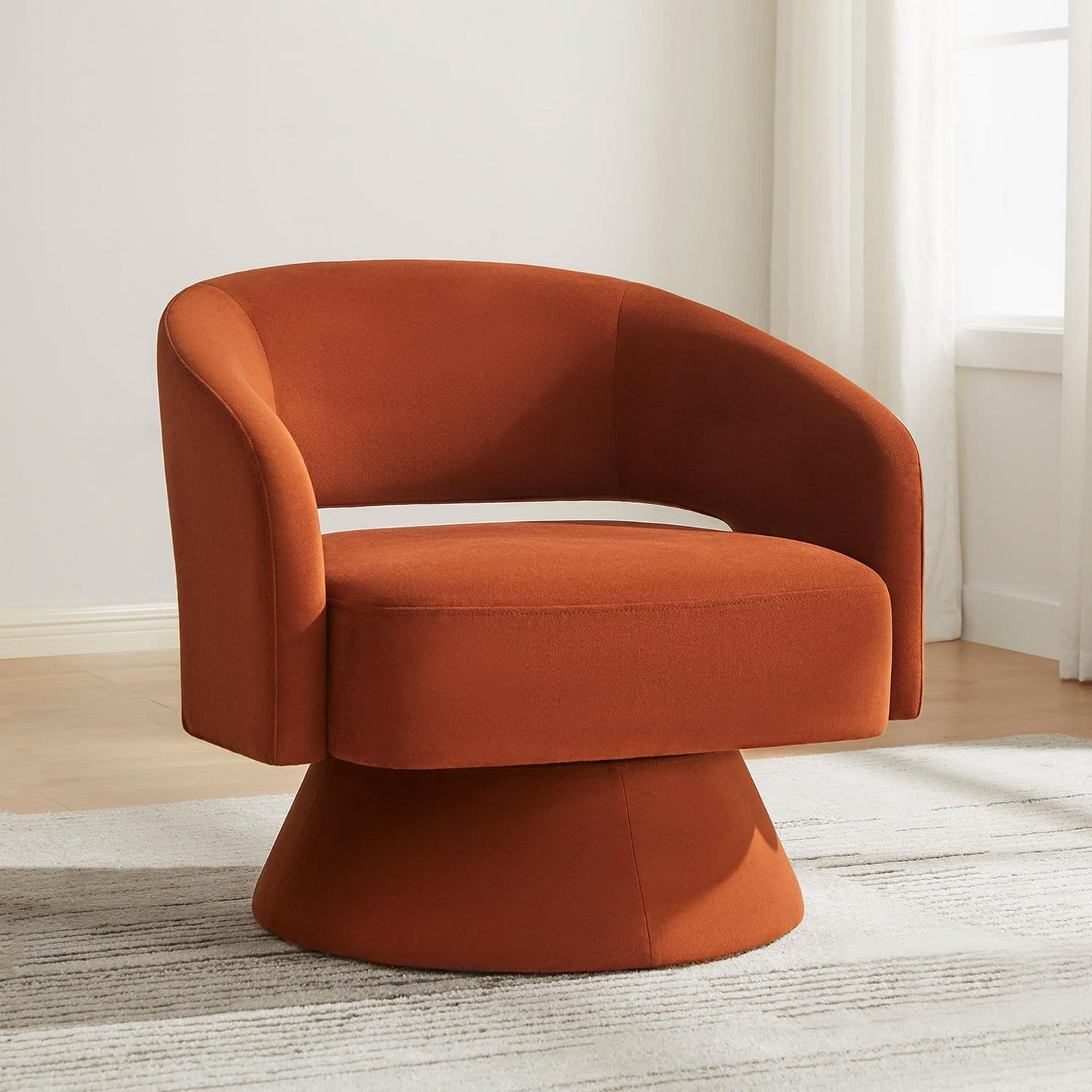 CHITA Swivel Fabric Accent Chair with Open Back&Wood Base,Modern Armchairs for Living Room Bedroom,Burnt Orange