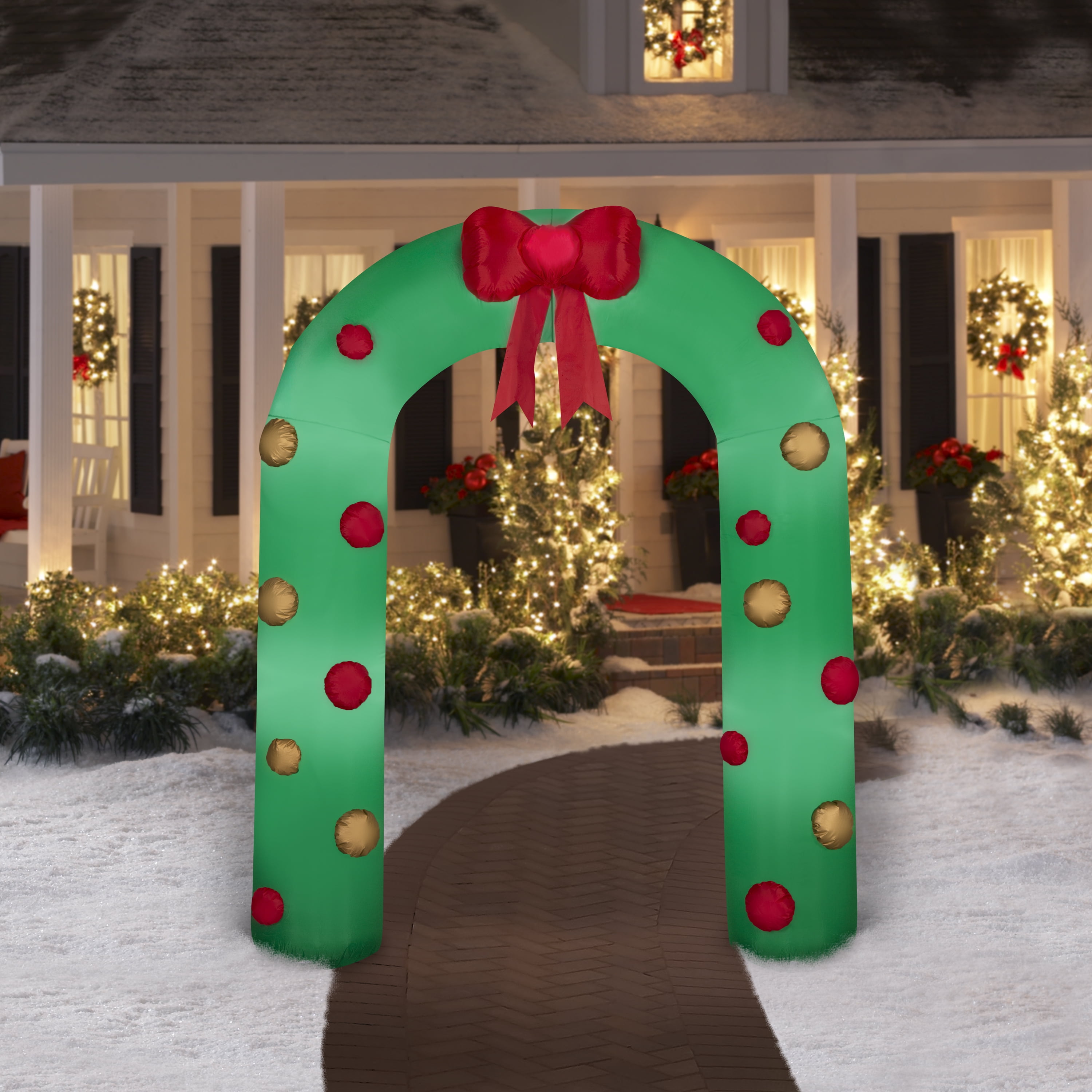 Make your yard look seasonally fun with this Christmas Air Blown Yard Inflatable. Featuring your favorite Christmas icon, this yard inflatable is sure to get your friends, family, and neighbors in the holiday spirit. It stands an astonishingly tall in your yard or indoors and is ready to greet your guests. For setup, just plug it in, stake it down and watch the magic unfold. Display this Christmas inflatable as a standalone or combine it with other inflatables to create a custom scene. Looking for more accessories? Check out other Way To Celebrate accessories like trees, lights, Christmas accessories, and more. Add some flair to your home with this astonishing Christmas Yard Inflatable. Christmas Air blown Inflatables Yard Decoration Christmas Garland of Bows Archway, 7.5 ft New