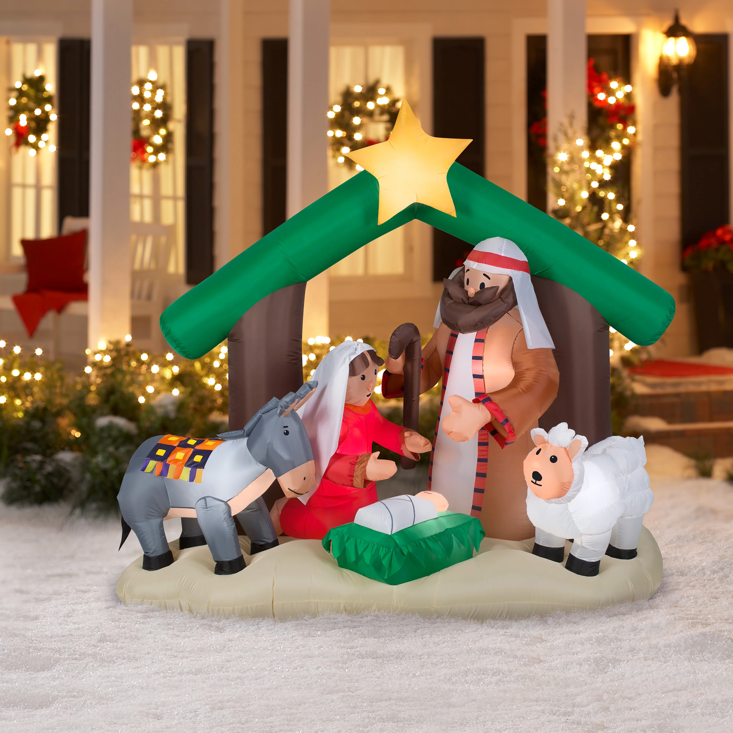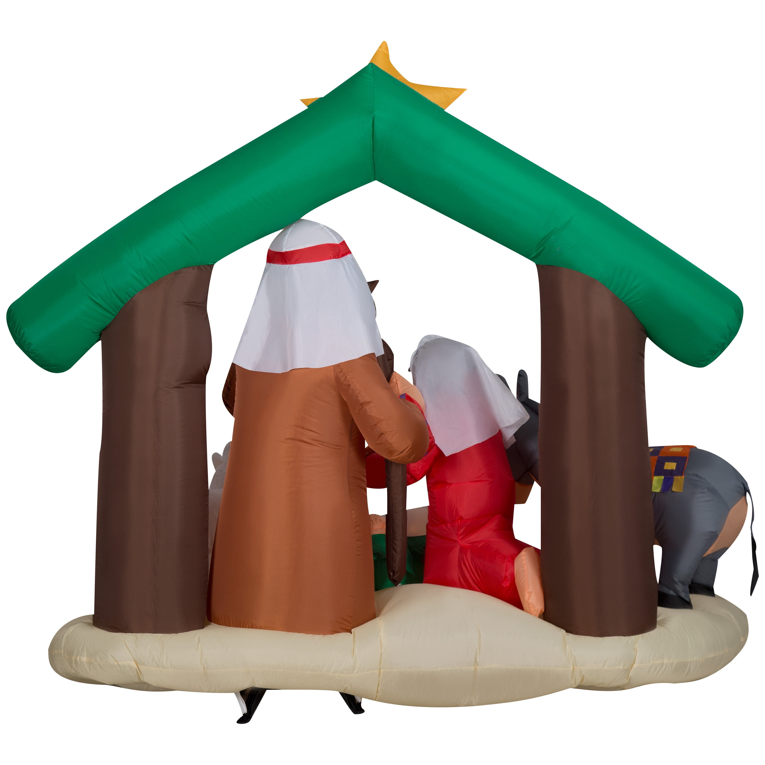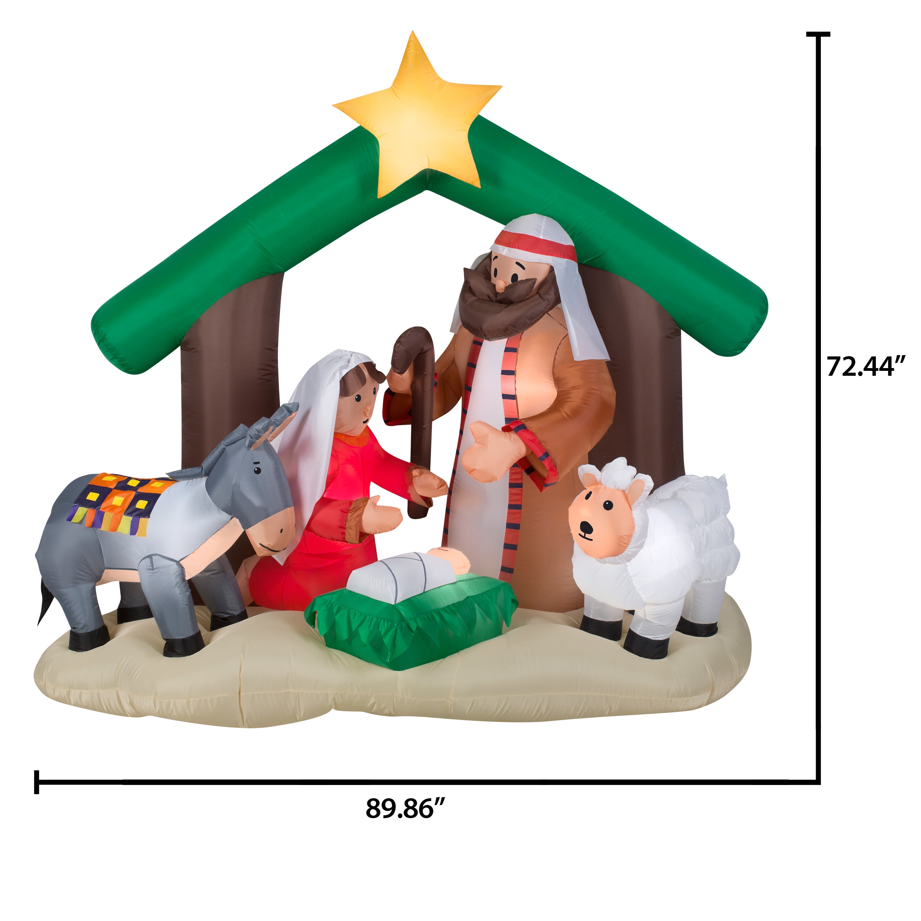 Christmas Airblown Inflatables Holy Family Nativity Scene 7 Foot This inflatable decoration is equipped with a blower, which can automatically inflate. Place inflatable outdoor decoration in an open space. Easy Setup and Storage: The color box is dedicated to increasing your festive joy. After use, you can wait for all air is expelled. Put back in the box.