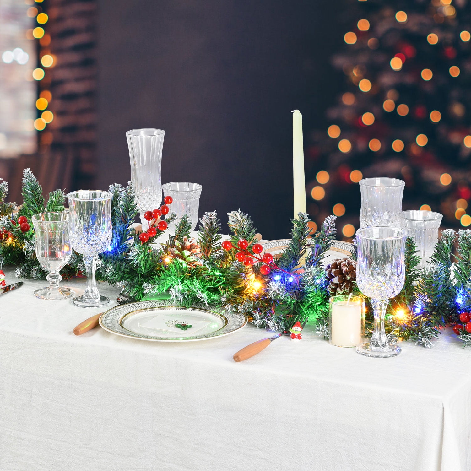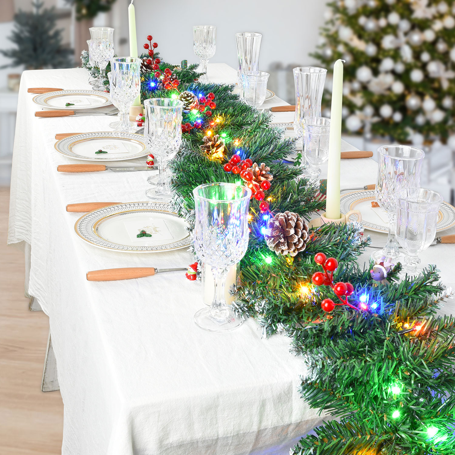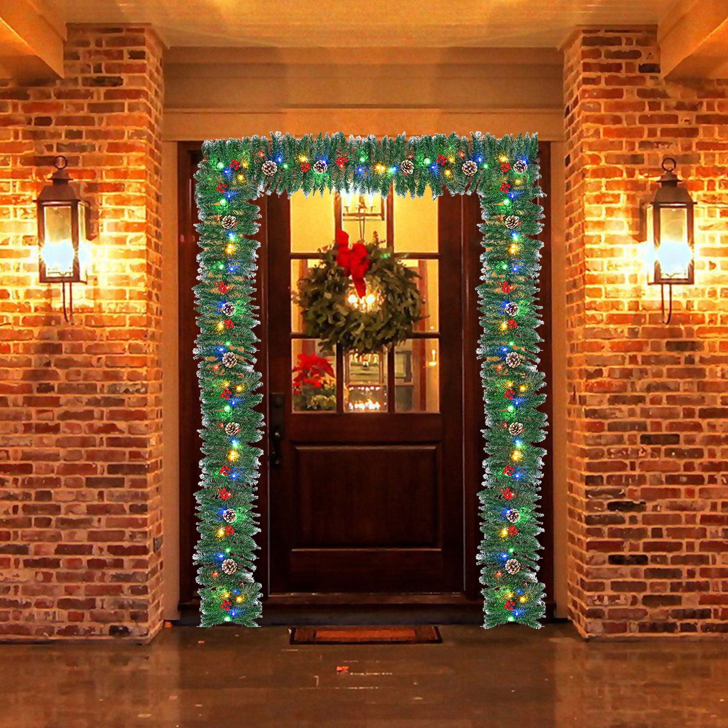 Christmas Garlands for Stairs 9Ft, Casacomfy Greenery Decor Fireplaces Stair Garland Christmas Pre Lit, Bannister Garland Christmas with Red Berries and Pine Cones, Christmas Garland with Lights
