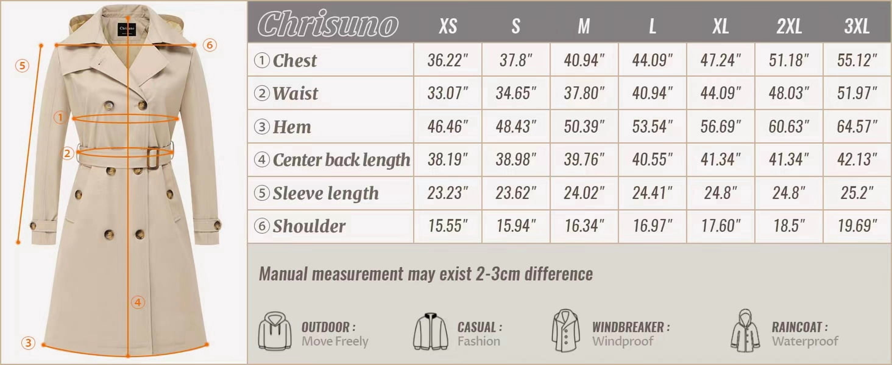❤ 3000mm Water-repllent & Windproof: The high-density shell is matched with a film cloth, which is durable, windproof and water-repllent. Easily cope with early winter or light rain season.nice dress coat for rainy days.This is a great travel coat. ❤ Anti-wrinkle & Lightweight fabric: Adopts breathable and water-repellent fabric, combined with densely woven twill structure, made special anti-static and anti-pilling treatments, makes this ladies dress coats lightweight and breathable, soft, anti-wrinkle and skin-friendly, bringing great comfort. Nice texture and style ❤ Classic versatile style: As a classic women’s double-breasted long trench coat, Fully lined,high quality medium weight raincoat, it’s made for women’s natural curves and makes you look good, tailored and feminine. Nice length and will go with a lot of outfits. The mid-length design can also be used as a casual business wear, with a tear-resistant lining, which highlights the sense of luxury. This women’s dress coat is perfect for daily wear, business, trip, outings, pictures. ❤ Removable hood & Practical pockets: Detachable hood, which can be used as a Practical raincoat. 2 side hand pockets can hold small objects, such as keys, cards, etc., and the inner pocket can hold a mobile phone. ❤ Temperament lapel & Belt: Classic lapel design, with a golden ratio belt, it can not only highlight the figure but also show the women’s capable business style. It shows a casual and relaxed style without a belt. High-quality resin buttons and belt buckles are different from ordinary windbreakers, it can better reflect the texture of the overcoat.