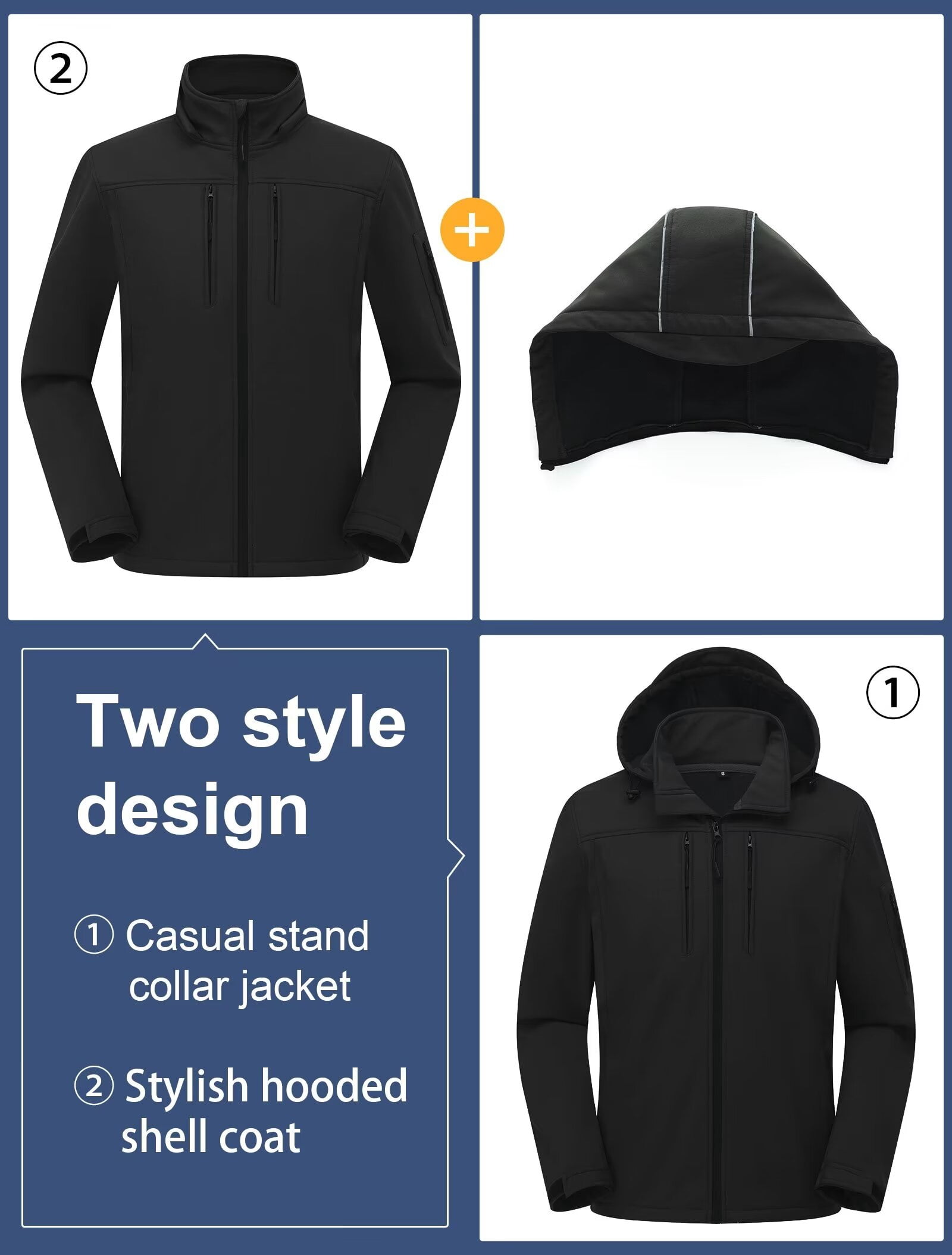 Chrisuno Men’s Softshell Military Jacket With Removable Hood, Fleece Lined and Water Repellent Outdoor Reflective Coat