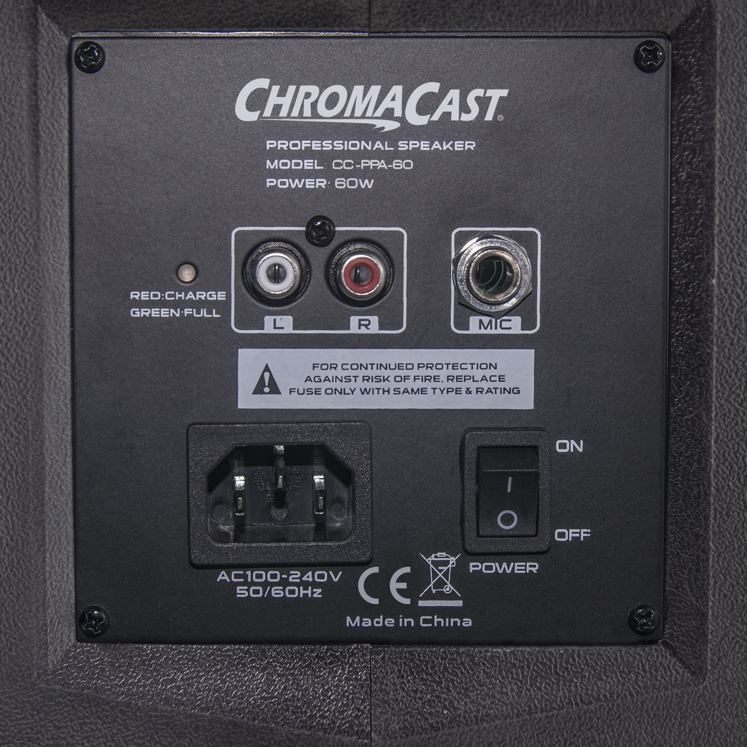 ChromaCast Portable 2 Way 2 Channel 60 watt Rechargeable Bluetooth PA Speaker