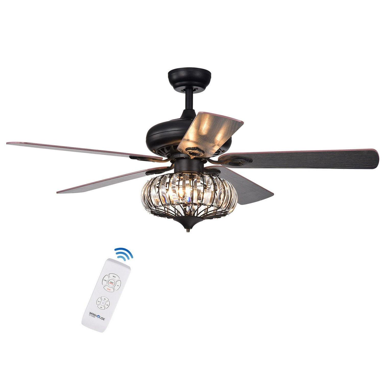 Chrysaor 3-Light Crystal 5-Blade 52-Inch Brown Ceiling Fan with Remote