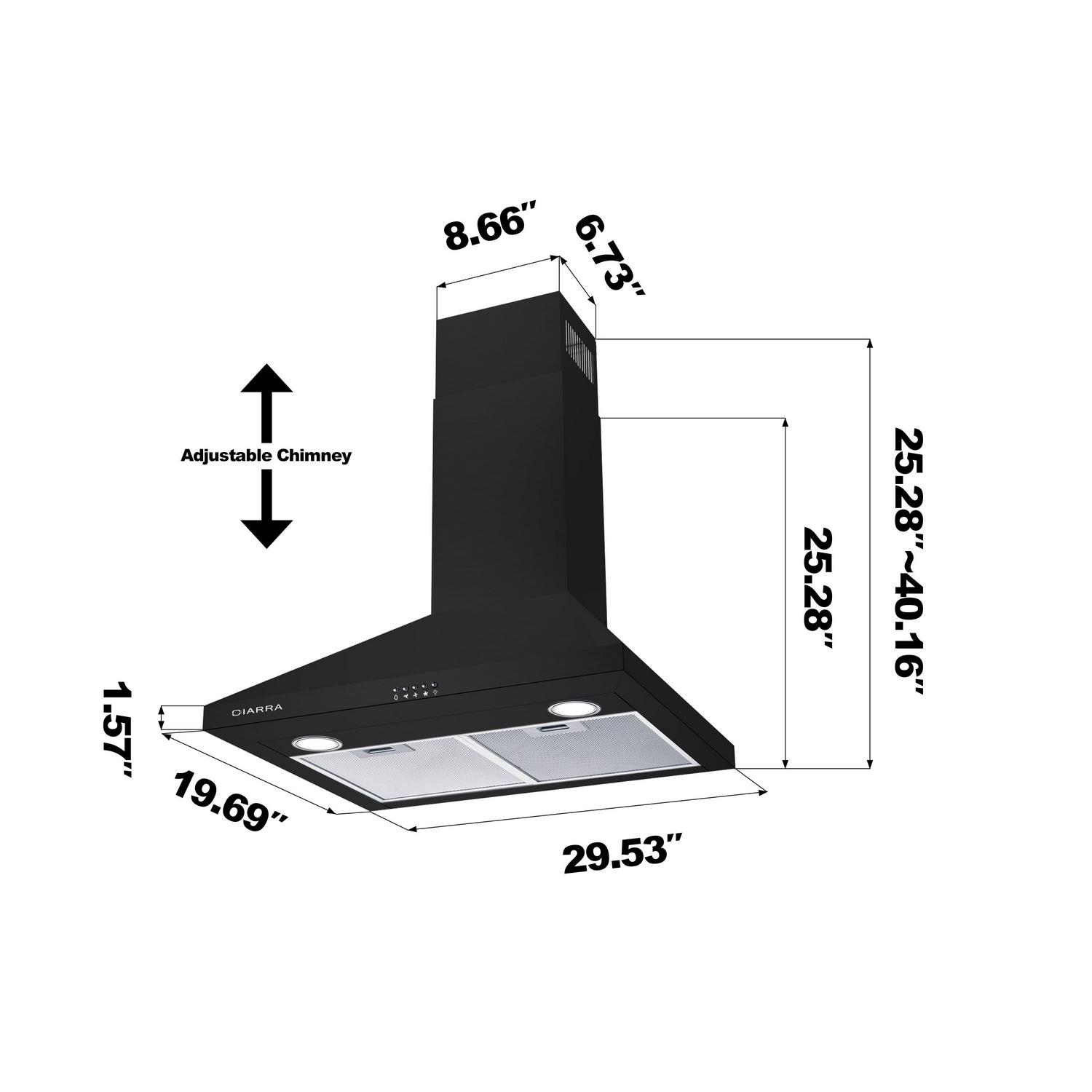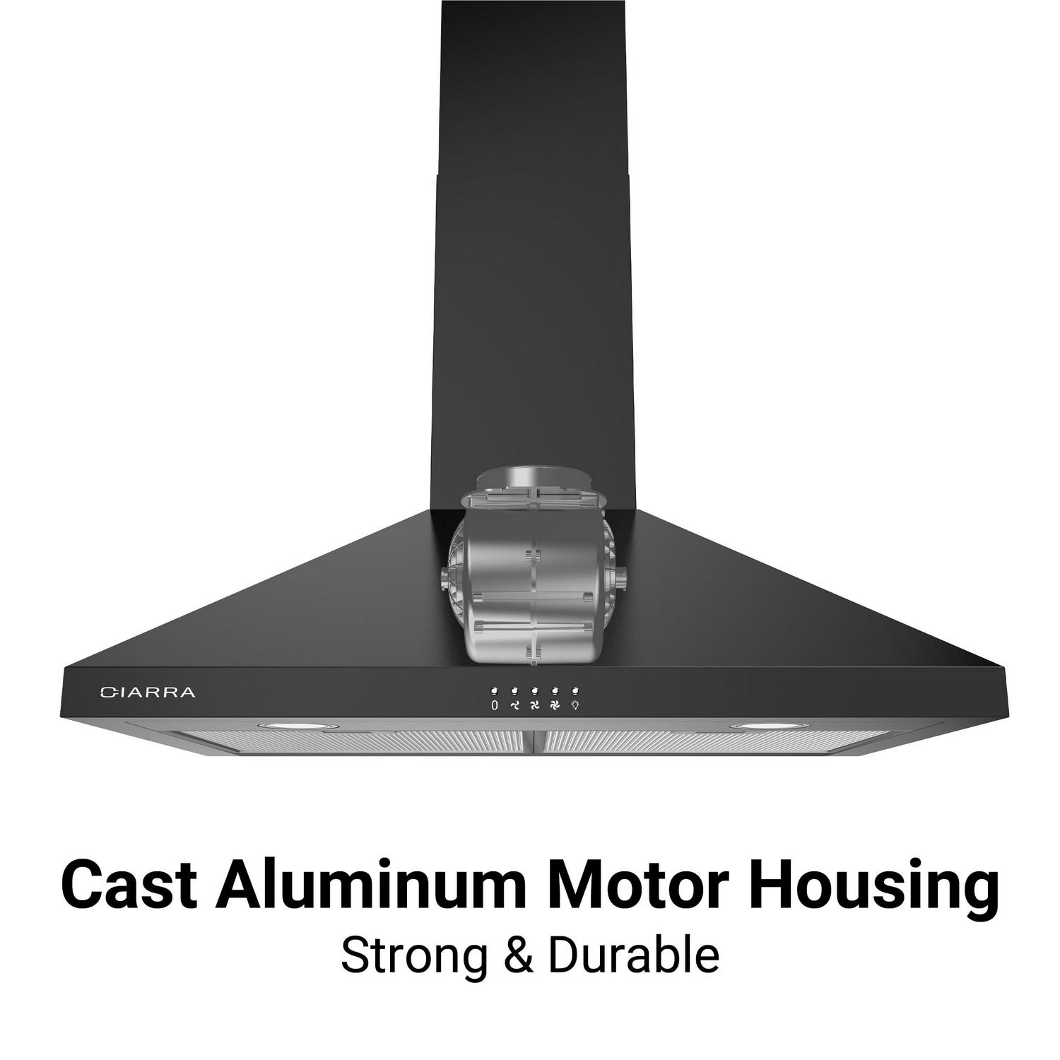 – POWERFUL BUT QUIET: CIARRA black range hood 30 inch with 450 CFM, effectively removing smoke and odors. Quiet operation, 8.5 Sones max at the highest speed.