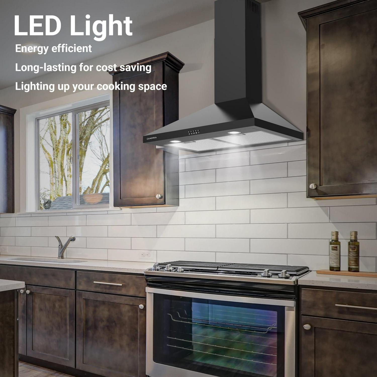 – ANTI-FINGERPRINT PAINTING: Wall mount range hood with matte sandblasted finished, scratch-resistant and easy cleaning.