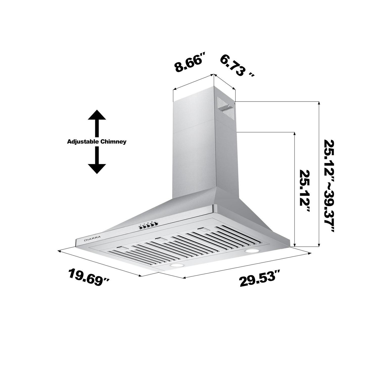 CIARRA Range Hood 30 inch 450 CFM Wall Mount Vent Hood with 3 Speed Exhaust Fan in Stainless Steel CAS30275