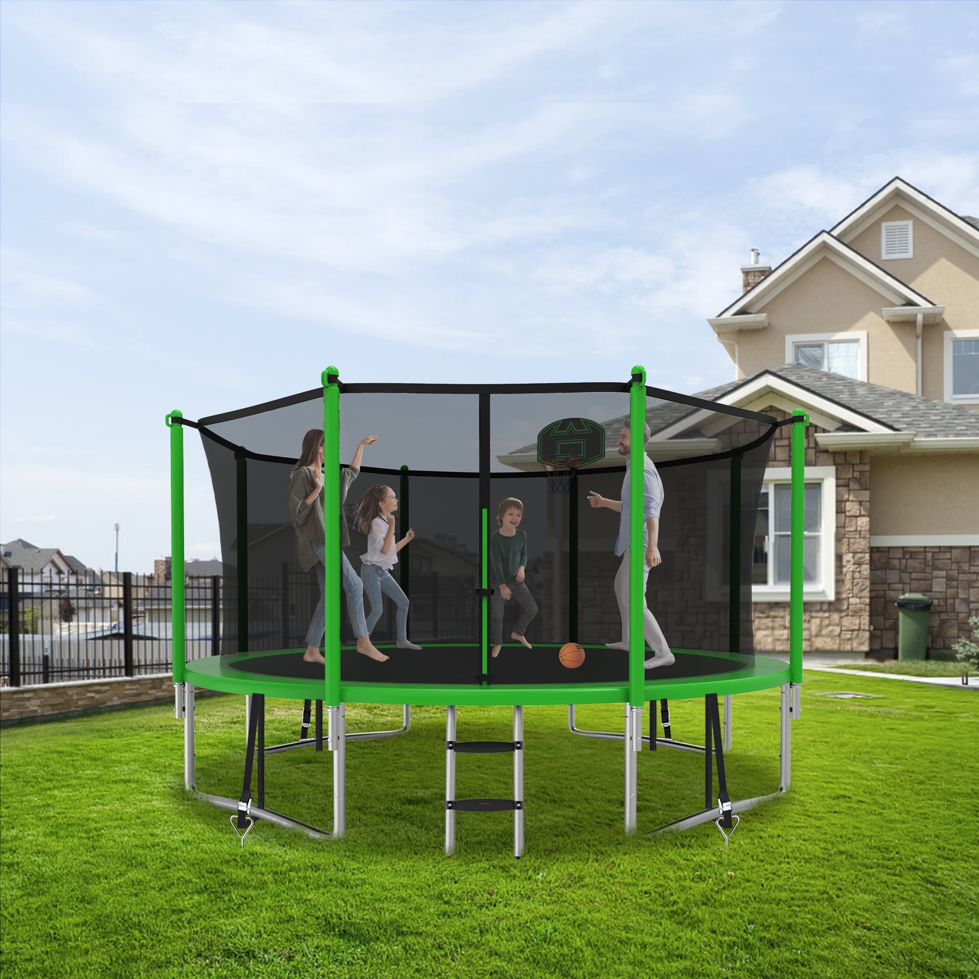 【Safety Is Job One】CITYLE 1200LBS weight capacity 12ft trampoline with basketball hoop for 6-8 kids and 3-4 adults, which meets advanced international standards on components, assembly and use. Besides, outdoor trampoline with enclosure is equipped with high wind trampoline tie down anchor kits to maintain excellent stability in stormy weather. Under the premise of safety first, CITYLE trampoline combo will become a bouncing paradise for the whole happy families. 【Trampoline Innovation Leaders】CITYLE trampoline with net is fully covered by Galvanized Anti-Rust Coating, sturdier and durable, last a very long time; heavy duty trampoline adopts Reinforced Curved Poles, avoiding collisions during play; Safety enclosure net is designed to 360° tightly wrap jump mat, No Gap Design to avoid pinching feet when bouncing; To create more fun, CITYLE brings trampoline with basketball hoop and rubber ball kit, a new bounce experience for kids and adults! 【Every Detail Makes Quality】1.5mm cold-rolled steel metal frame is covered by galvanized anti-rust coating, sturdier and durable; 6.5 inch super elastic galvanized anti-rust spring and high-density, anti-UV PP Bouncing jumping mat provide the best bounce experience; Tightly woven safety enclosure net with the double-sided zipper and double buckle create the safest bounce environment; Widened Anti-Slip trampoline ladder for easy entrance and exit. 【100% Easy to Install】The connector of w-shaped leg tube, net poles and the top edge of enclosure all adopt metal pop-up buckles design, which increases the installation efficiency by 50%, compared to traditional screws. To put together easily, trampoline 12 feet installation tools needed are grouped in a box including 2* spring tools. Furthermore, CITYLE outdoor backyard trampoline for kids provide graphic installation manual and video installation guide, 2 people can fast setup 12 foot trampoline in 1-2 hours. 【5-Star Customer Service】CITYLE promise only design, produce and manufacture premium trampolines and our mission is to let valued customers enjoy Touch the Sky fun. CITYLE trampoline for adults provides 24 months warranty for all trampoline parts and accessories, 30 days free return service, 24/7 online and telephone after-sales service. Best Christmas gift for kids children families!