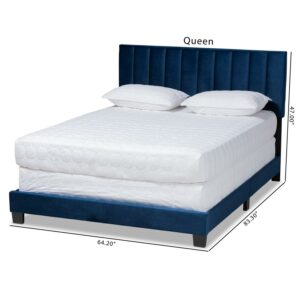 Clare Glam and Luxe Navy Blue Velvet Fabric Upholstered King Size Panel Bed