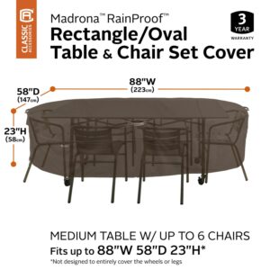 Classic Accessories Madrona Waterproof 88 Inch Rectangular/Oval Patio Table and Chair Set Cover