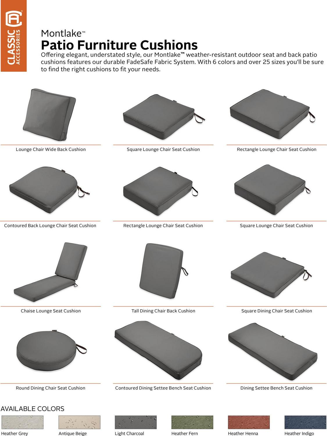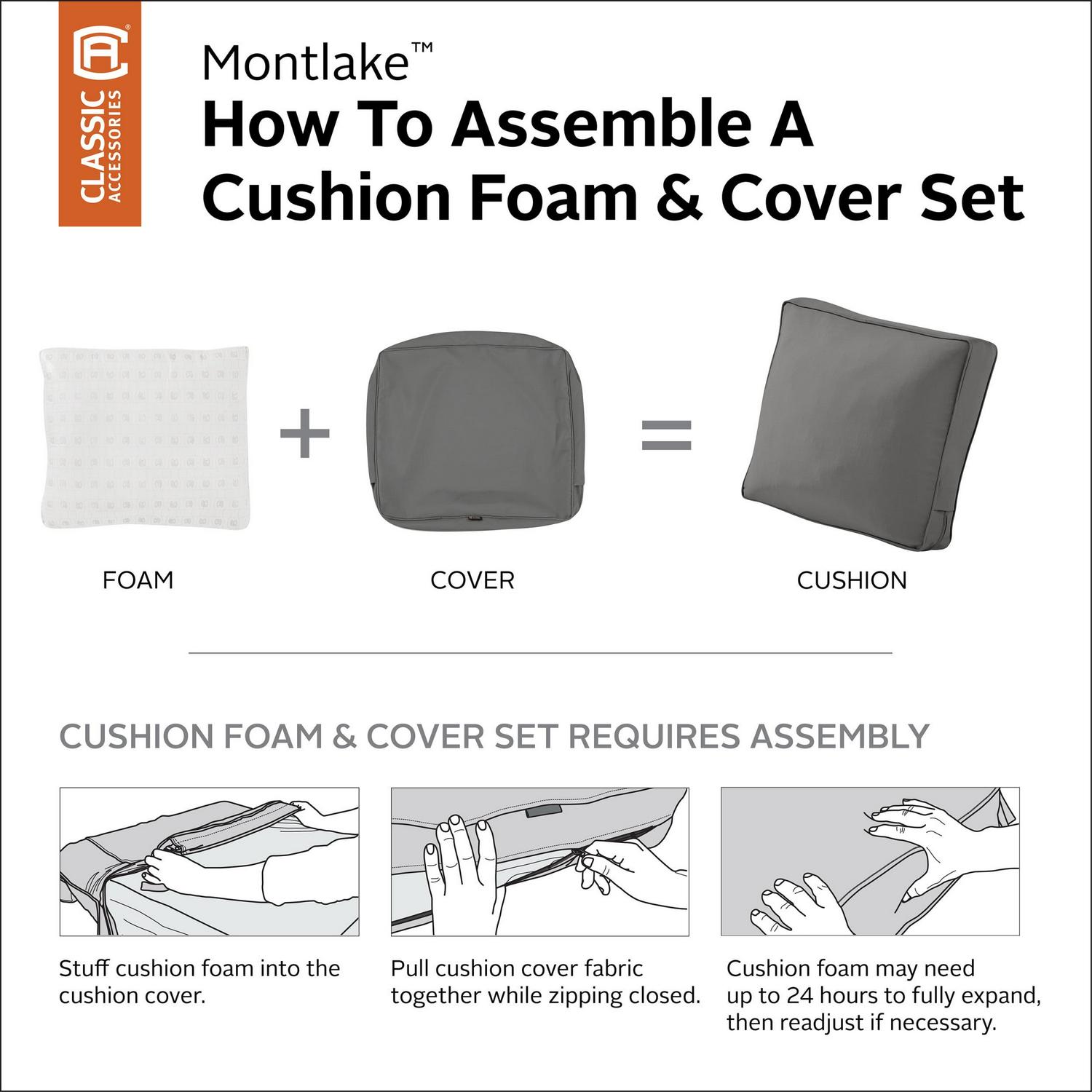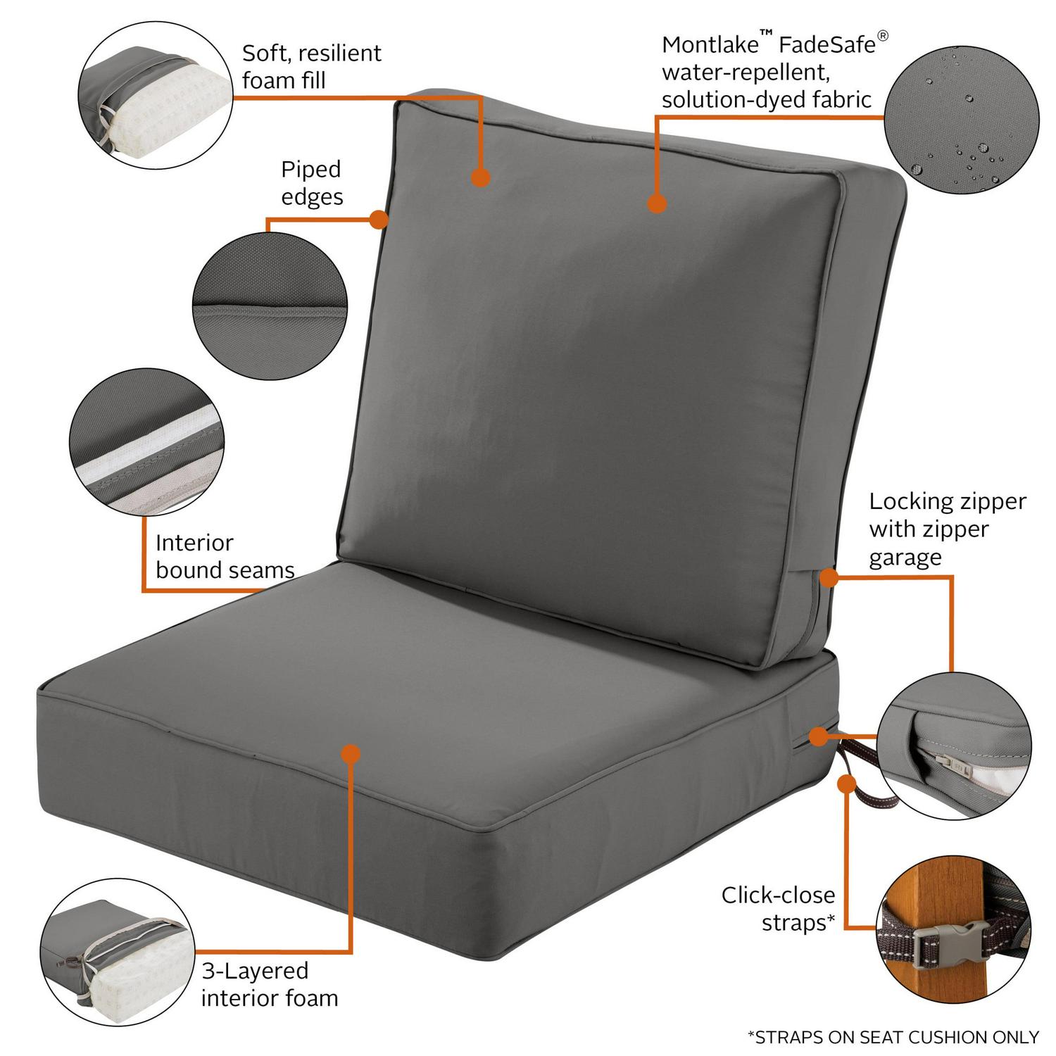 Designed for comfort and durability, montlake cushions combine fashion-forward looks with long-lasting materials to give you a serene outdoor oasis. This cushion set offers a dense, supportive foam seat with a pillow-like back cushion to make you feel like you re lounging in the clouds. Because we apply color to the fabric core, rather than on top of the fabric, you ll get rich hues that are solution-dyed, resist fading, and will stay vibrant season after season.