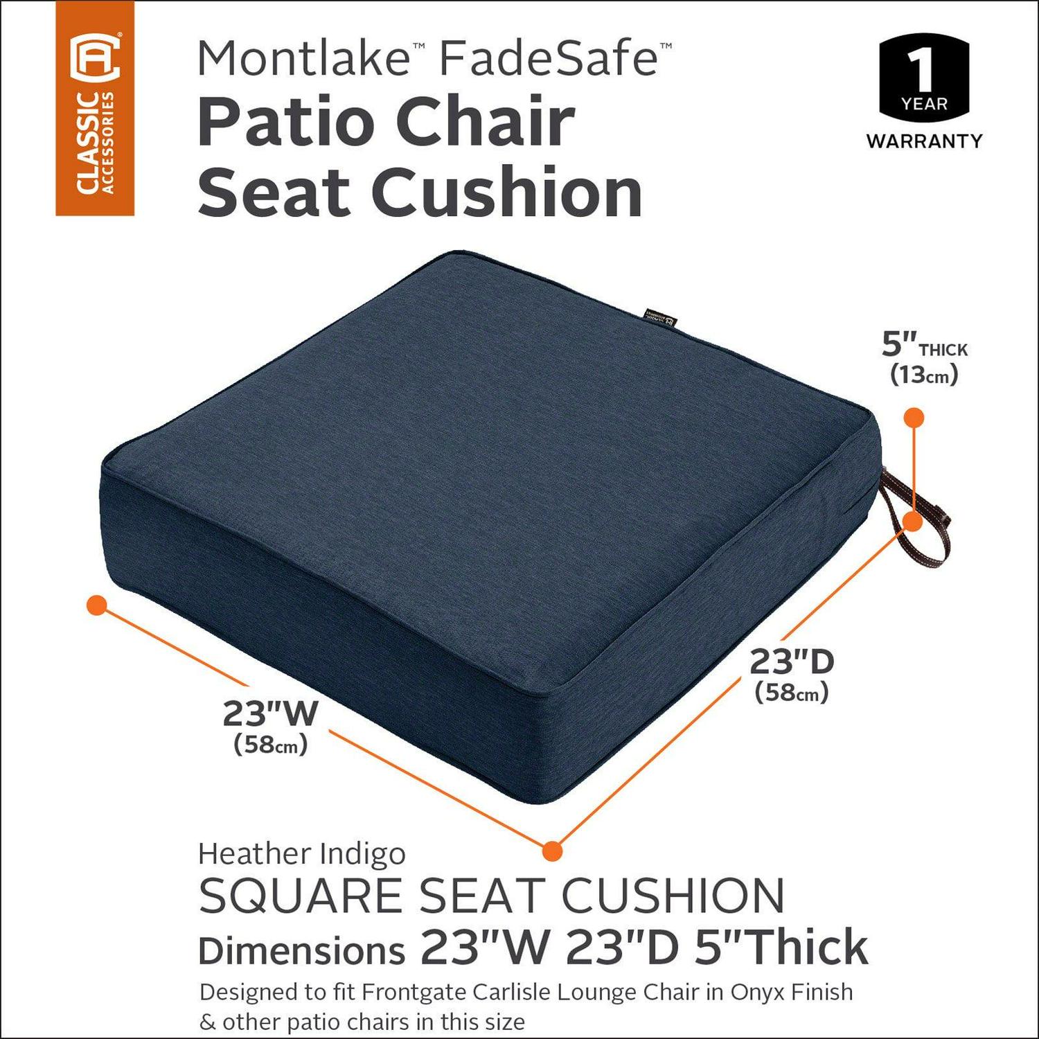 Classic Accessories’ Montlake Cushion Collection is offered in 6 colors and 28 sizes and is made with Fade Safe solution-dyed fabric to ensure that colors last in all conditions. Montlake Fade Safe fabric uses a high-denier polyester to give you maximum comfort and lasting performance. High-quality foams use a dense core with a softer outer layer to provide just the right amount of give for a firm but comfortable surface. These cushions provide a fashion-forward look with durable materials to make your patio space appealing and inviting whenever you want to go outdoors. When you buy a Classic Accessories patio cushion you are not just getting a cushion you are also purchasing lasting comfort and peace of mind. Not only will your patio cushions be protected from the elements.