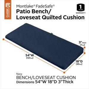 Classic Accessories Montlake FadeSafe Water-Resistant Patio Bench/Loveseat Quilted Cushion, 54 x 18 x 3 inch, Navy