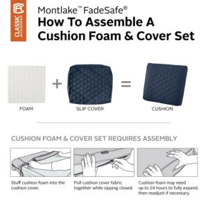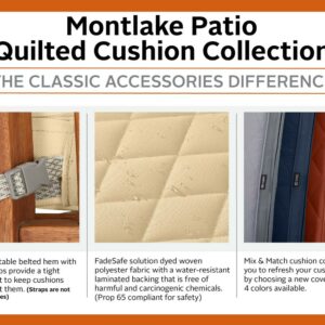Renew the look and feel of your patio furniture with Montlake FadeSafe Quilted Cushion Covers. See the difference: Montlake FadeSafe fabric makes use of vibrant, coordinating colors in a solution-dyed fabric that revitalizes your patio space immediately. Feel the difference: these designer cushions have a layer of quilted padding, giving a luxurious level of comfort to your seating. With quality materials and features carefully selected by our in-house design team, these cushions promote an inviting atmosphere you can gather to, rely on and relax in. Offered in vibrant colors that coordinate with the rest of the Montlake FadeSafe Outdoor Living Collection, quilted cushion covers are ready to help you explore what your patio can be. Meant to be modern, the Montlake FadeSafe collection aims to refresh the parts of your home where people gather and Discover More Time Outdoors. With our products, we hope to help you have a great time in your yard and home. If you have any questions or concerns, or if your cushion cover fails within the warranty period, look for us online and take advantage of our Hassle-Free warranty program supported by our US-based customer service team.
