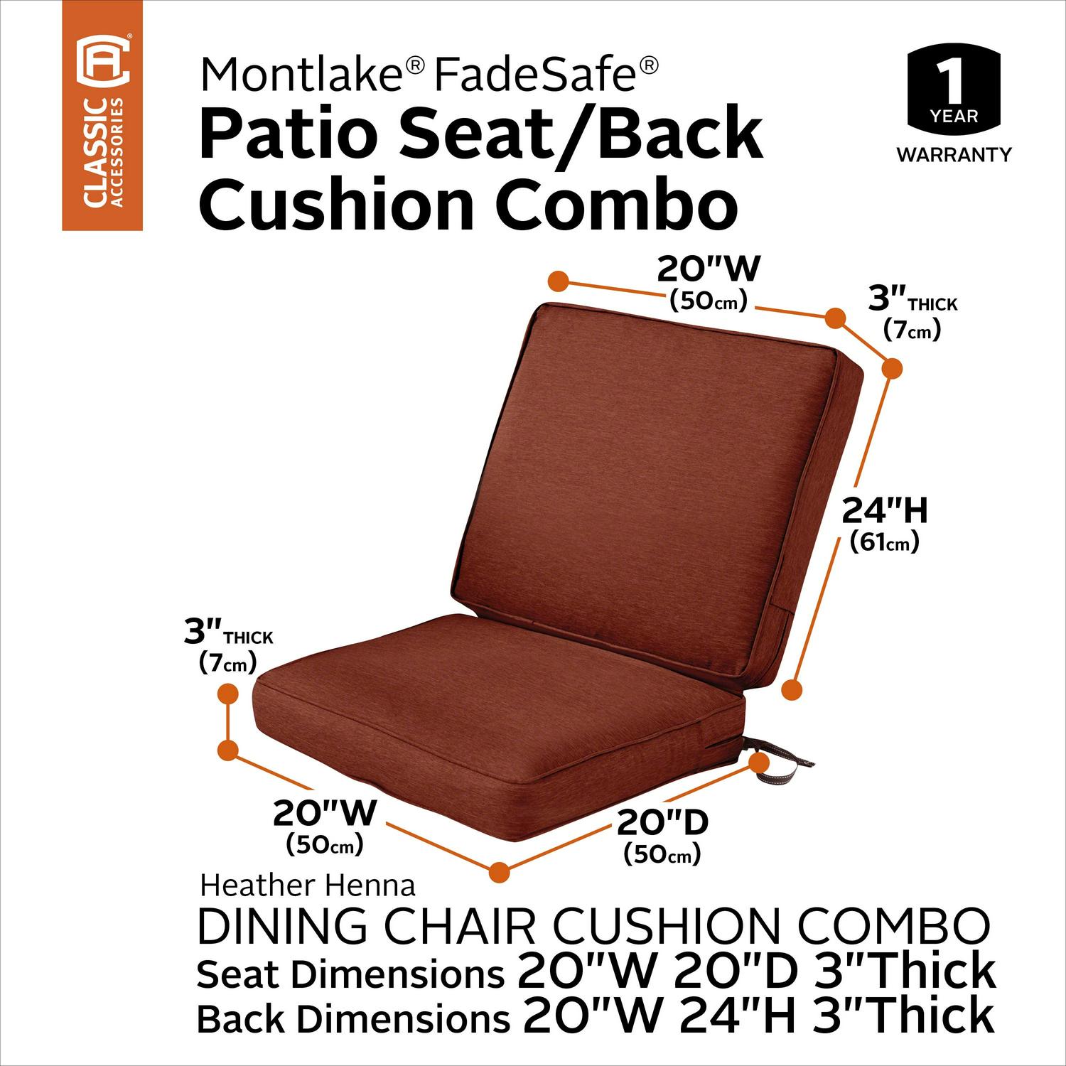 Classic Accessories Montlake FadeSafe Water-Resistant Patio Chair Cushion, 44 x 20 x 3 inch, Heather Henna