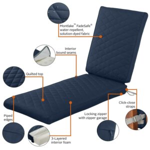 Classic Accessories Montlake FadeSafe Water-Resistant Patio Chaise Quilted Cushion, 72 x 21 x 3 inch, Navy