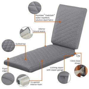 Classic Accessories Montlake FadeSafe Water-Resistant Patio Chaise Quilted Cushion, 80 x 26 x 3 inch, Grey
