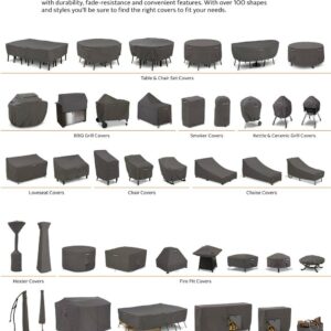 – CUSTOM FIT OUTDOOR PATIO COVER: Reinforced padded handles provide comfort when installing and removing covers while double cord closures within specially designed hem tunnels allow easy adjustment resulting in a custom-like fit