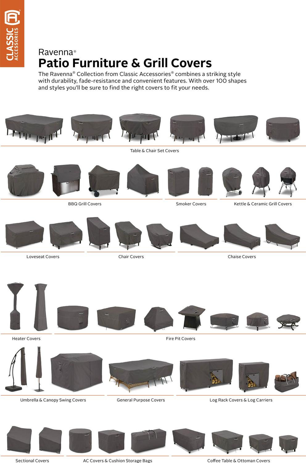 The Ravenna Collection from Classic Accessories combines convenient features with durable construction and handsome looks. Time spent with family and friends will be safe for years to come with covers from the Ravenna Collection by Classic Accessories. When you buy a Classic Accessories grill or patio furniture cover you are not just getting a cover; you are also purchasing peace of mind. Not only will your grill and patio furniture be protected from the elements, but you will be protected with the easiest warranty in the industry. If your product fails within the warranty period, look for us online and take advantage of our Hassle-Free warranty program supported by our US-based customer service team.