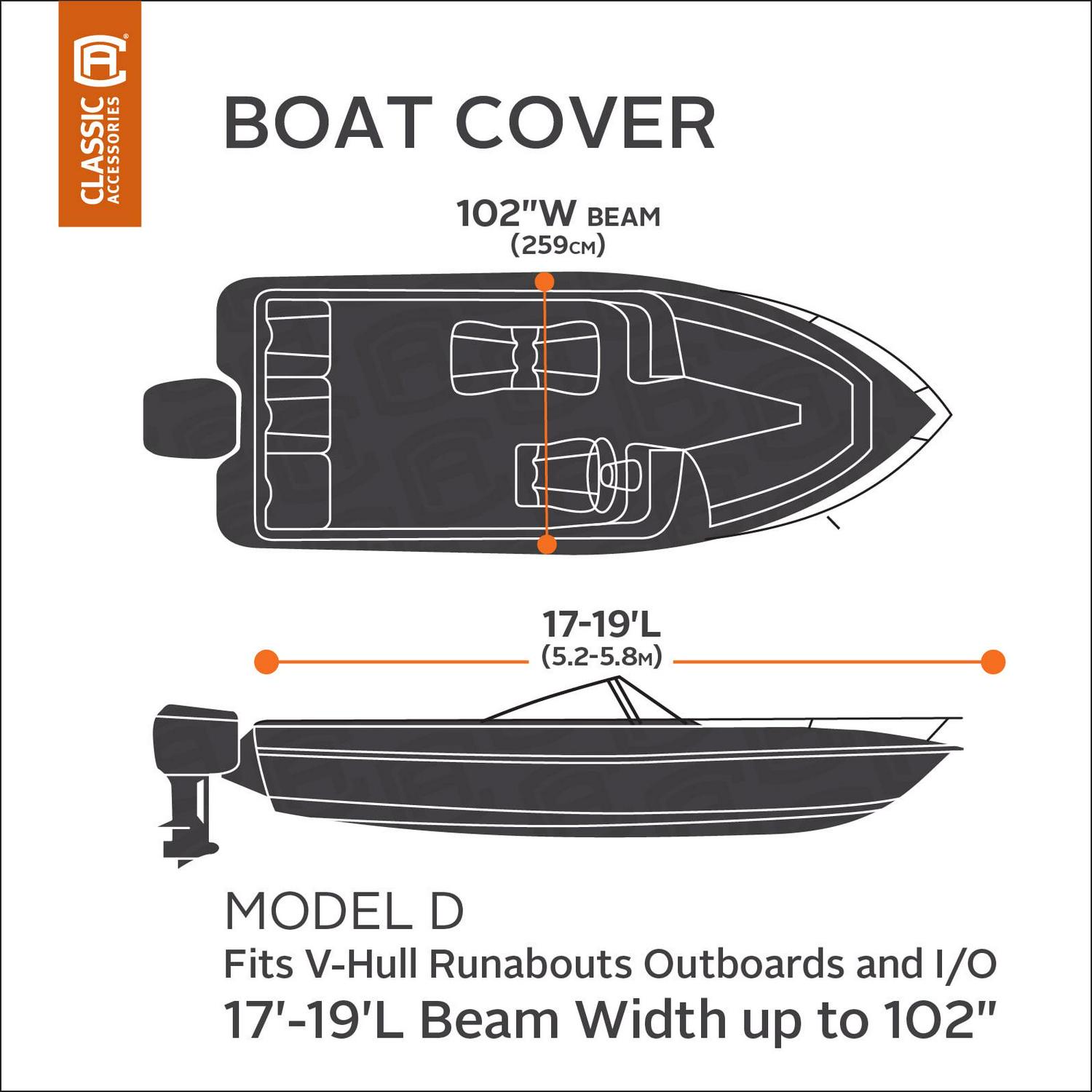 Classic Accessories Stellex All Seasons Boat Cover, Fits Boats 17′ – 19′ L x 102 W, Trailerable Boat Cover with Polyester Fade-Resistant Fabric, Model D