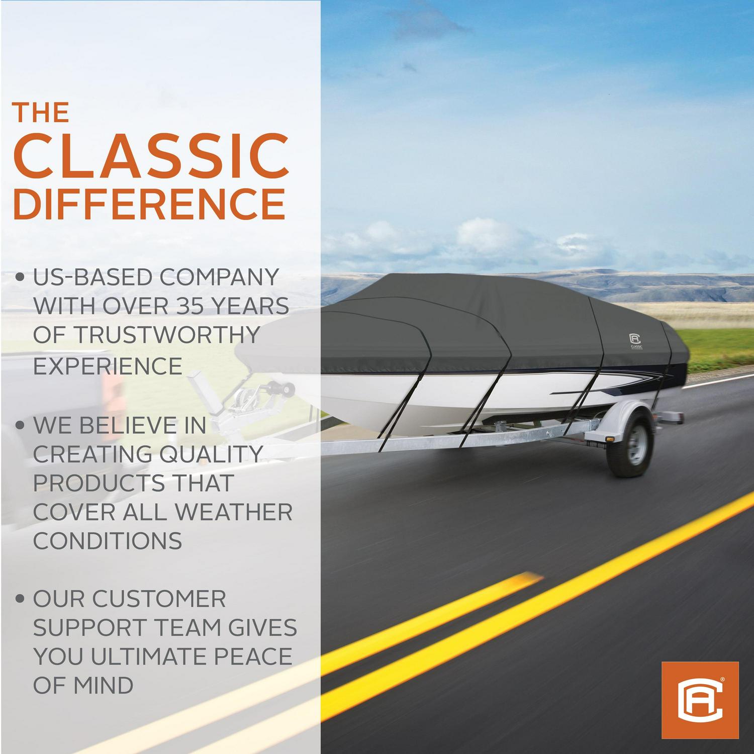 Classic Accessories StormPro Heavy-Duty Boat Cover, Fits boats 12 Ft. – 14 Ft. Long x 68 In. Wide