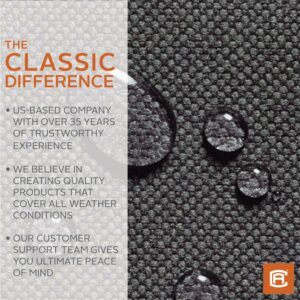 – BOAT ACCESSORIES: Dual air vents reduce inside moisture and ballooning of cover at high speeds, storage bag, trailering straps, transom flap tie-down rope and 2 stern-fit elastic cords included, and 5-year Hassle-Free warranty included