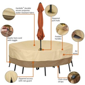 Classic Accessories Veranda Round Patio Table and Chair Set Cover with Umbrella Hole
