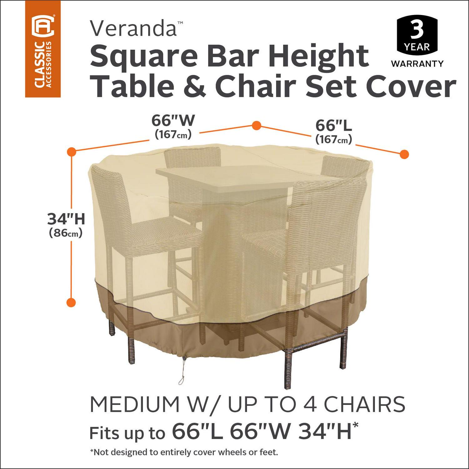Classic Accessories Veranda Water-Resistant 66 Inch Square Patio Bar Table and Chair Set Cover