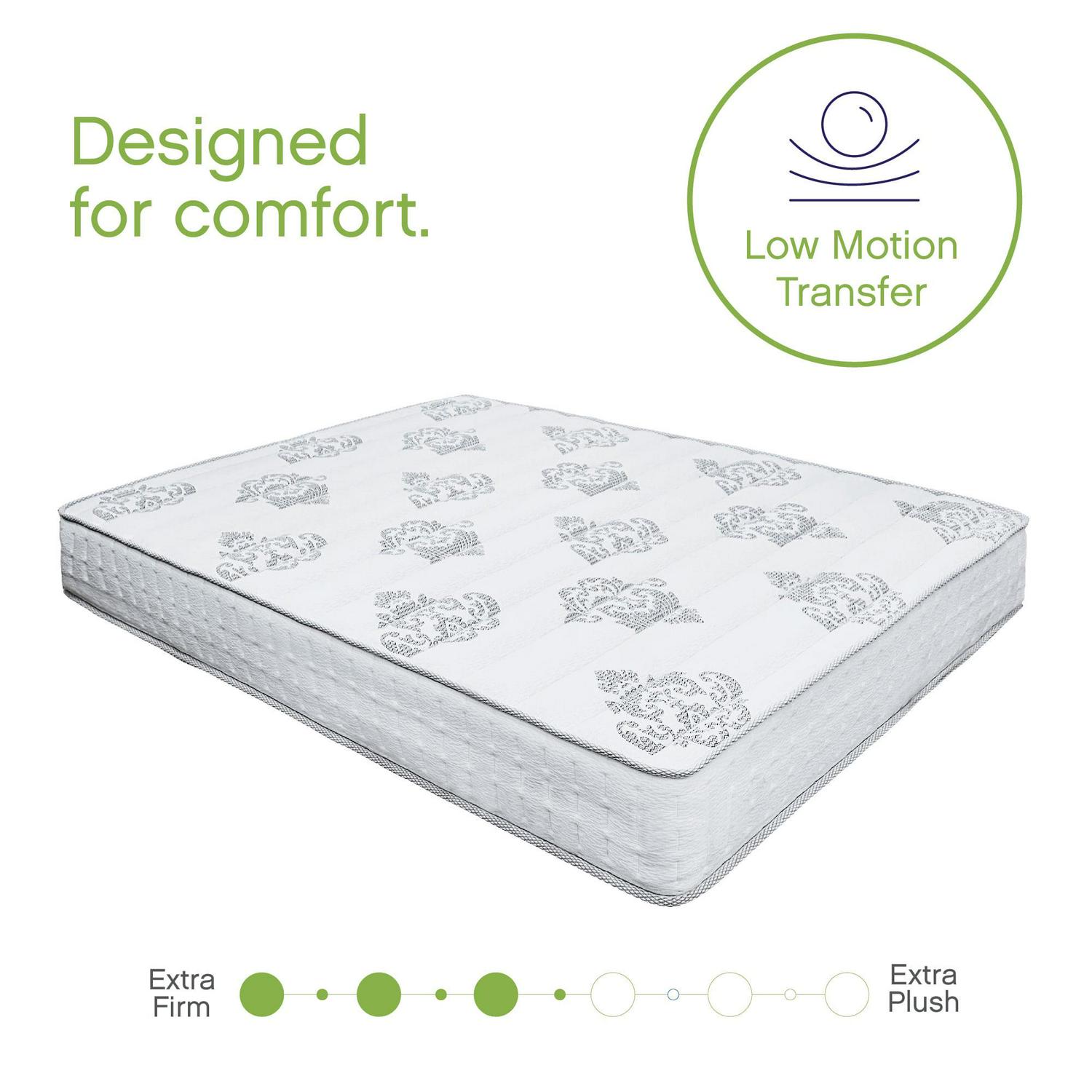 - Cushion-firm feel with quilted knit cover, corded edge support, and coordinating knit side panels