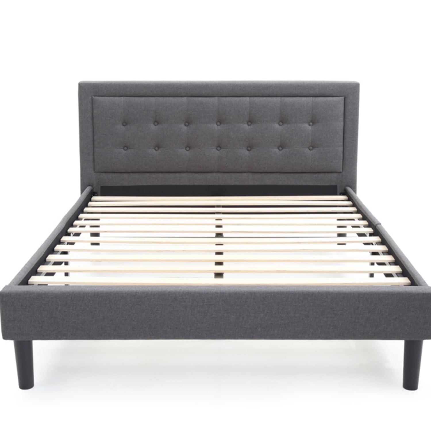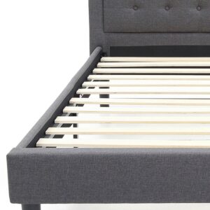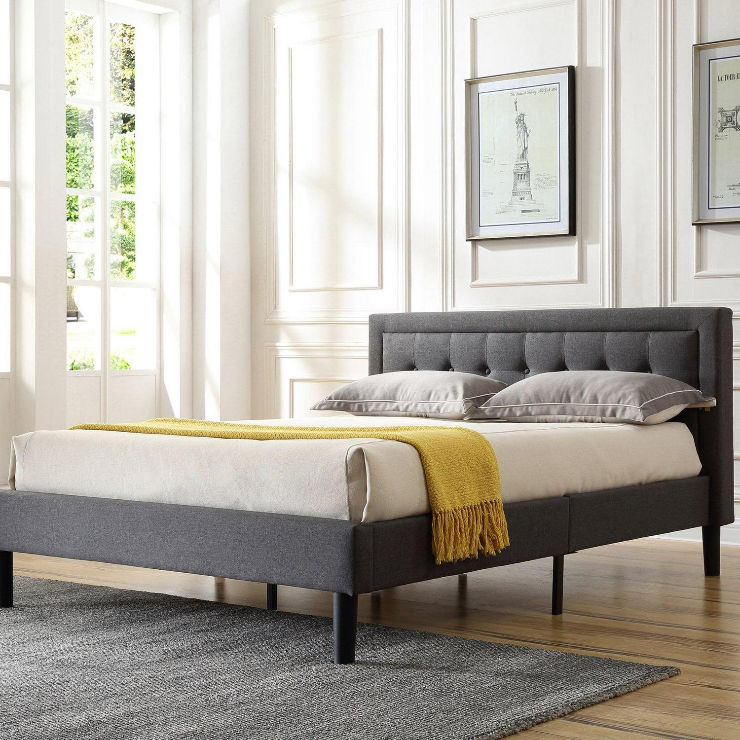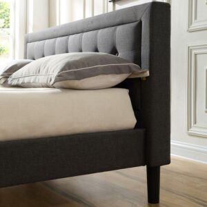 Update the style of your bedroom with the Classic Brands Mornington Upholstered Low Profile Platform Bed Frame. Designed with both style and function in mind, this low-profile platform bed features durable frame construction wrapped in modern-contemporary upholstery able to complement any existing decor. The platform bed rails and headboard sport soft-touch upholstery, with button-tufted detailing on the headboard. Metal tubing comprises the frame, making the platform bed lightweight yet durable. Sturdy wooden slats with a center support system remove the need for an extra, bulky box spring. This low-profile platform bed comes with easy assembly instructions and all the parts store in a zippered compartment on the back of the headboard, creating a bed frame that is compact and portable. Don’t sacrifice the size of your bed for one that can easily move; the platform bed frame breaks down easily and stores in the compartment to maneuver around doorways and small spaces. The Classic Brands Mornington Upholstered Low Profile Platform Bed Frame give you a low-profile platform bed that combines longevity, a compact size, and universal style.