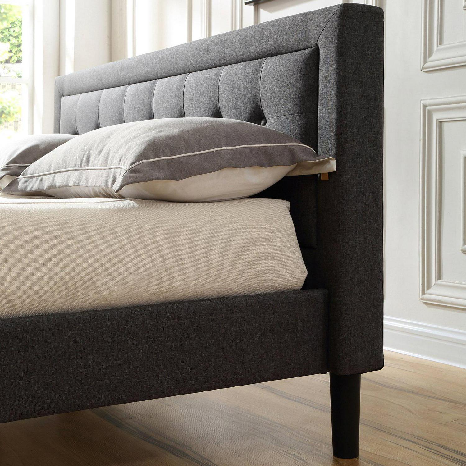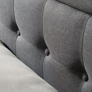 – Soft-to-the-touch button-tufted upholstery on headboard and rails