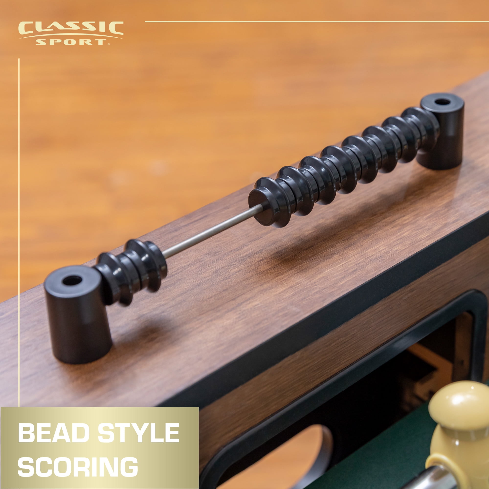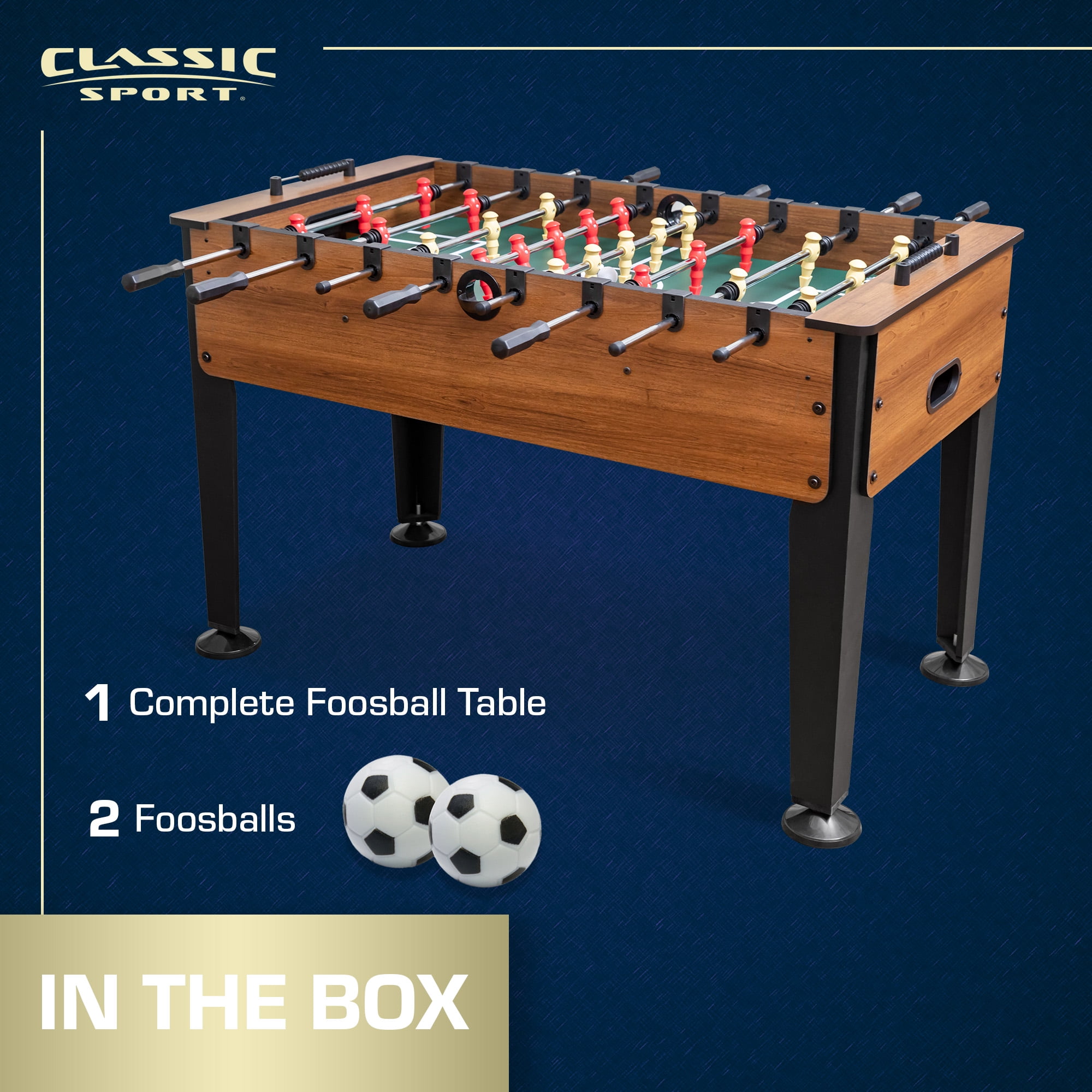 Classic Sport Official Competition Size: This 54-inch long, 29-inch wide, and 34-inch high foosball table is designed to meet official competition standards, providing an authentic playing experience. Easy Assembly: With pre-assembled player rods and quick lock bushings, assembling the Newcastle Pro Foosball Table is a breeze, allowing you to set up and start playing in no time. Durable Construction: Featuring steel player rods with robo-style players, this foosball table is built to withstand intense gameplay, ensuring long-lasting durability and performance. Convenient Scoring: Keep track of the action with bead-style scoring, allowing players to easily monitor their progress and compete against opponents. Stable Gameplay: The Newcastle Pro Foosball Table comes complete with oversized leg levelers, ensuring a stable and level playing surface, so you can enjoy fair and competitive matches every time. Plus, it includes 2 foosballs, so you have everything you need to get started right away.