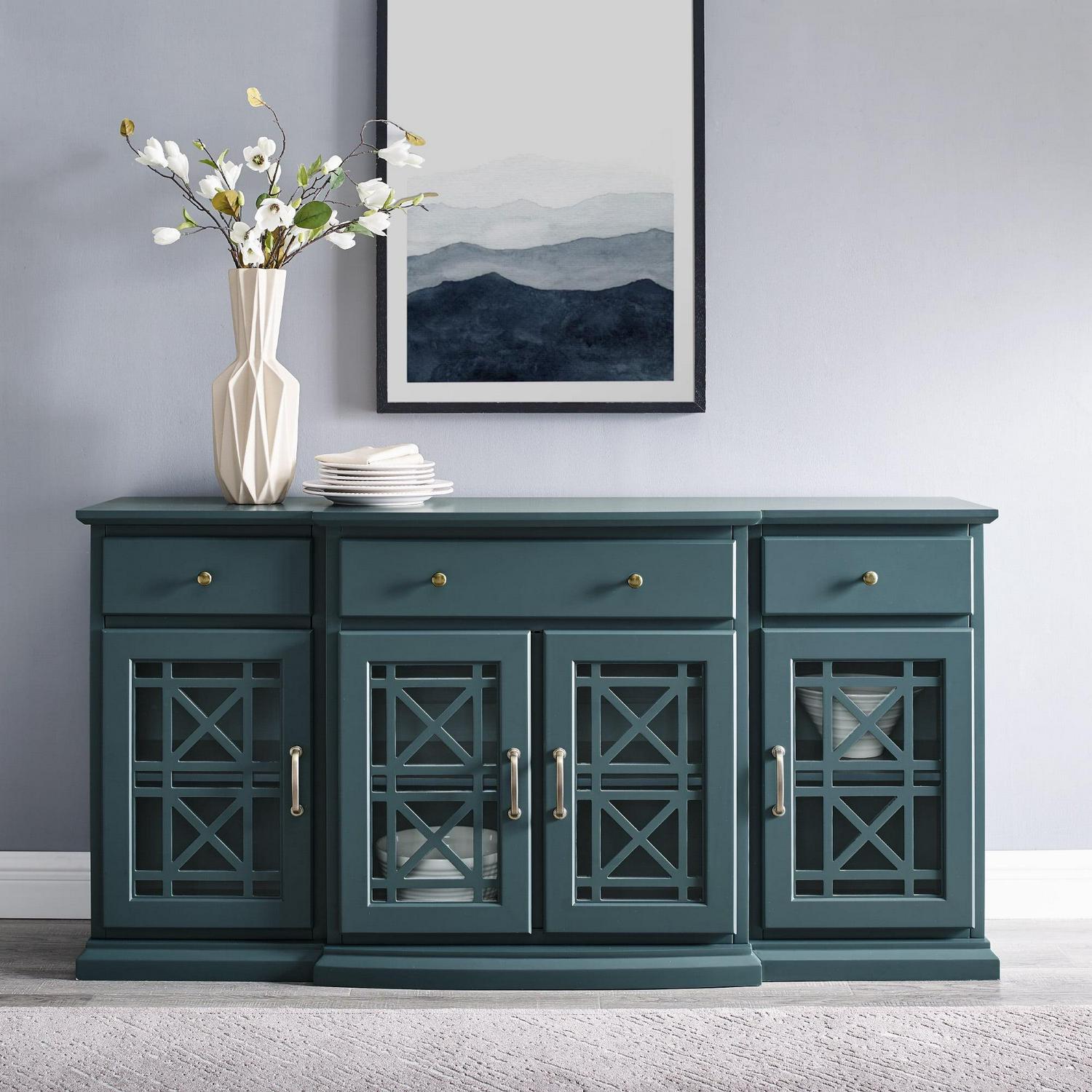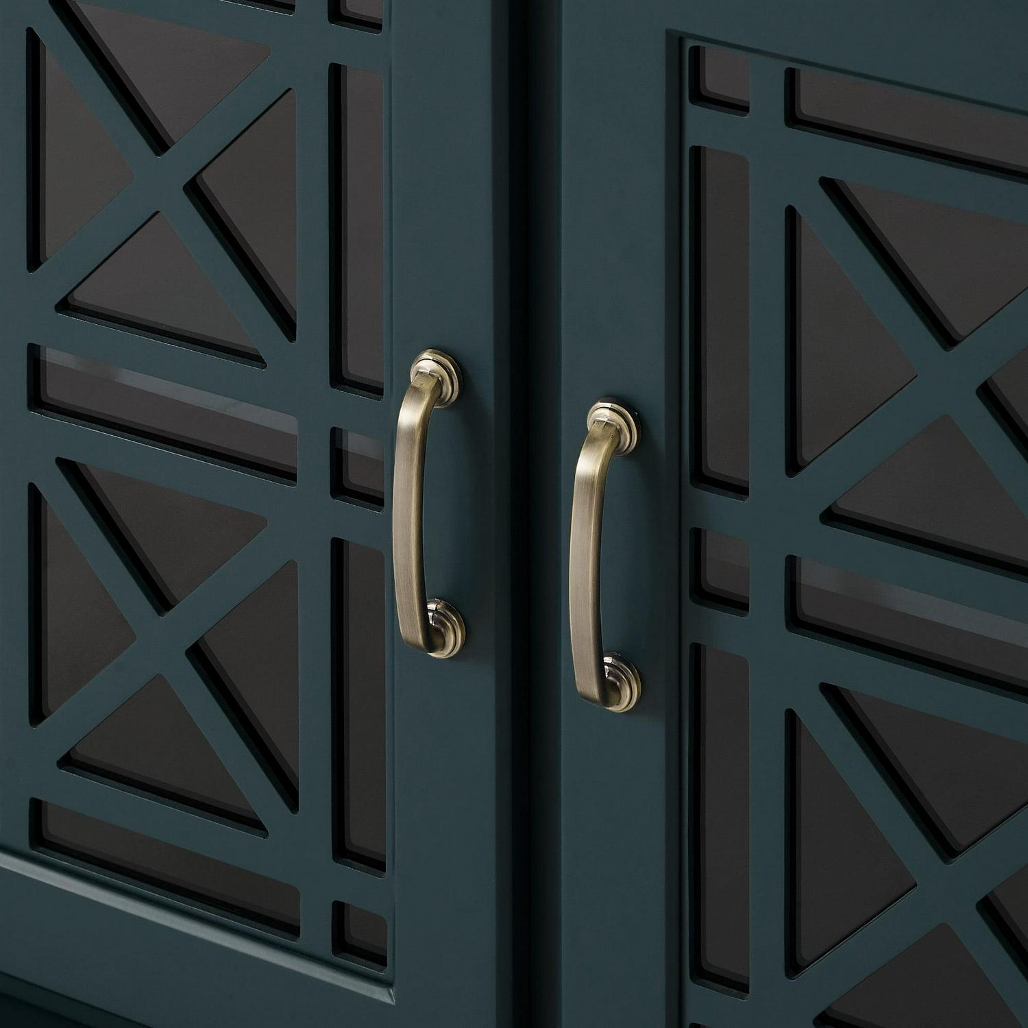 Classic Tiered-Front Glass Door Dark Teal Fretwork Sideboard by Manor Park