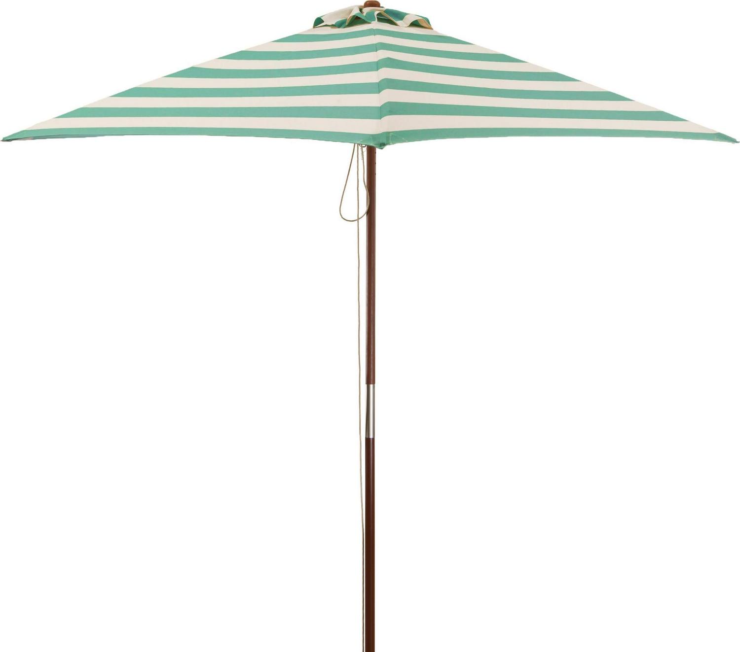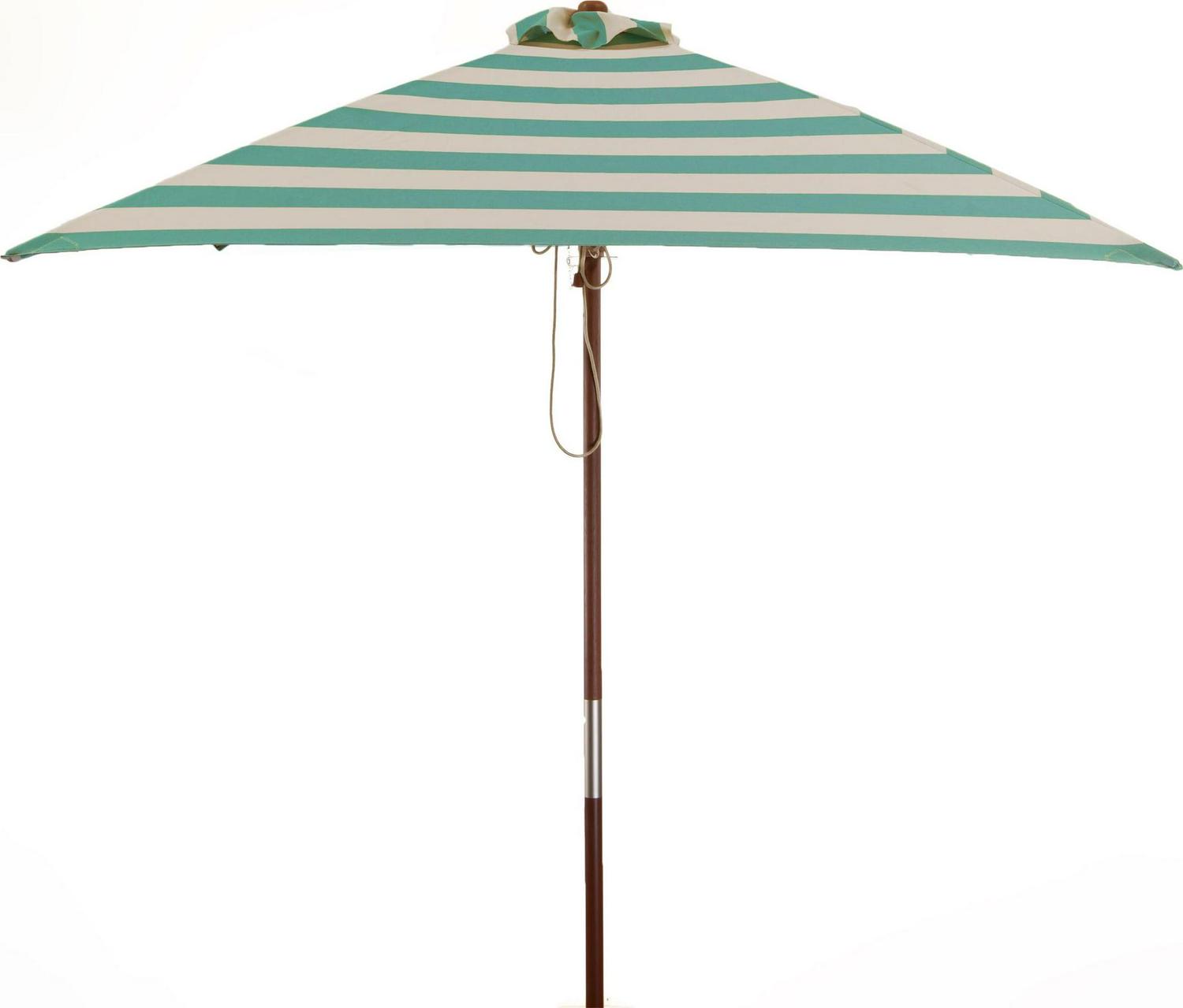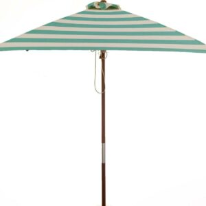 Classic Wood 6.5 ft Square Market Umbrella in Soft Teal and Ivory Stripe