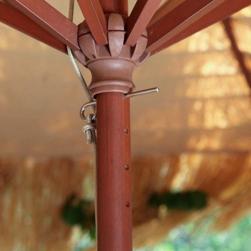 Classic Wood 9-Foot Market Umbrellas offer premium durable, long-lasting and great looking hardwood eucalyptus. Harvested from sustainable sources, the wood frame in this umbrella will add an extra sense to your outdoor environment. This umbrella also offers an easy-to-use pulley system, a durable, fade-resistant solution dyed polyester cover, and a top-cap wind vent that keeps your umbrella stress-free in windy environments.