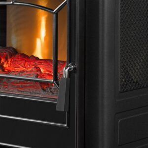 An operable door with a picture window and arched frame detailing make this ClassicFlame 17.5″W Infrared Quartz Electric Stove Heater just as charming as it is efficient for heating up any space in your home. Place it in any room for supplemental heat up to 1,000 square feet. The infrared quartz heat will warm your space quickly without reducing the natural humidity in the air, for the most comfortable heat possible that doesn t dry out the room. Not only will you have efficient heat to cozy up to, but you ll also have the beautiful ambiance of a gentle rolling fire. Turn the heat off and keep the flames on in the warmer months for a fireside glow all year long.