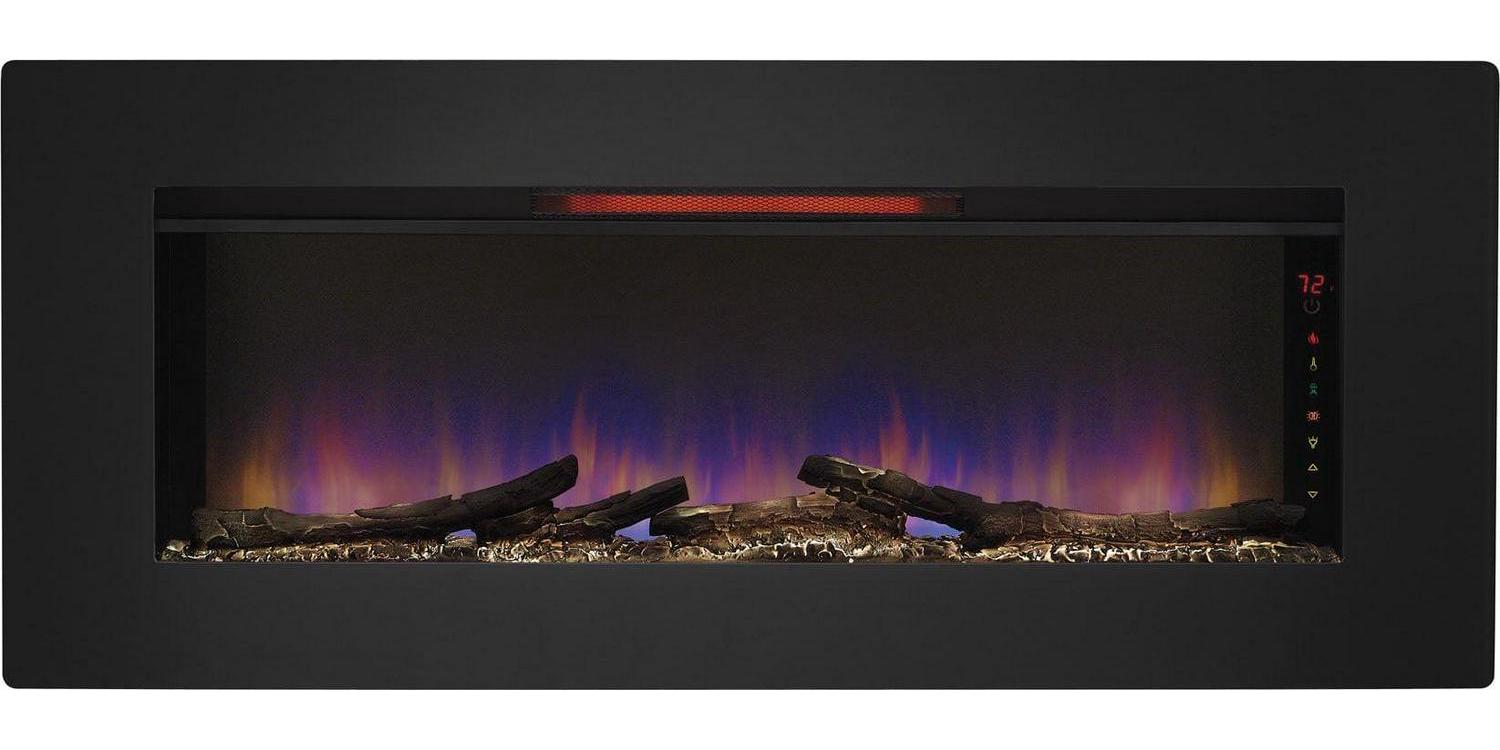 You can customize the open front tray of your fireplace with 3 media types including translucent fire glass, ivory river rocks, or rustic driftwood. Decorative LED sidelights that light the surrounding wall add ambiance as they glow in five color options: amber, blue, amber, and blue, color cycling, and off. Decorative LED up lights also offer five color options in combinations of white and blue.