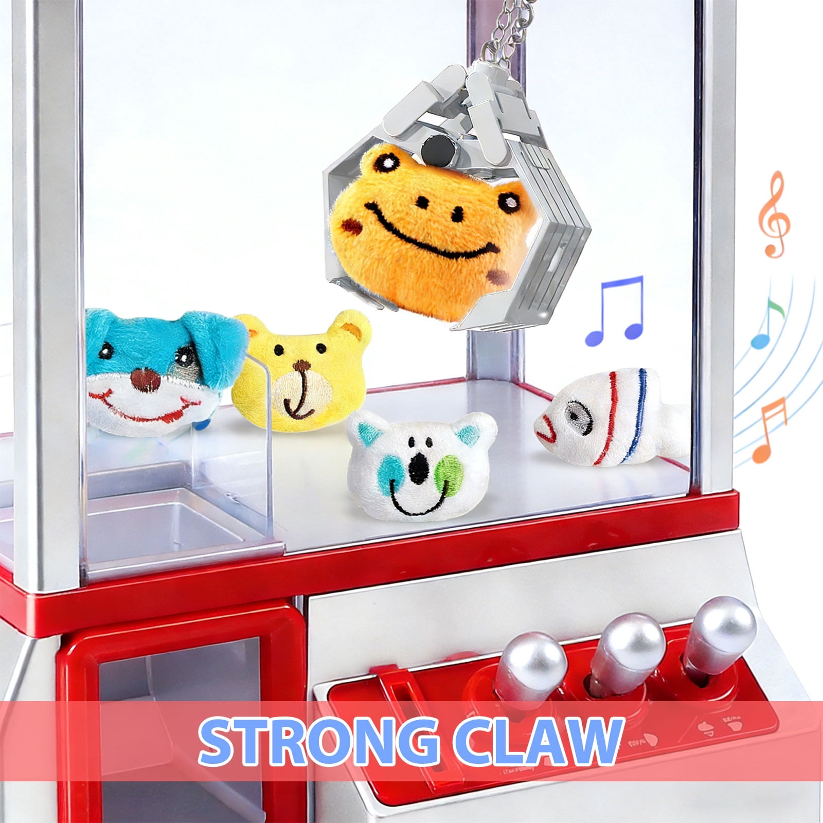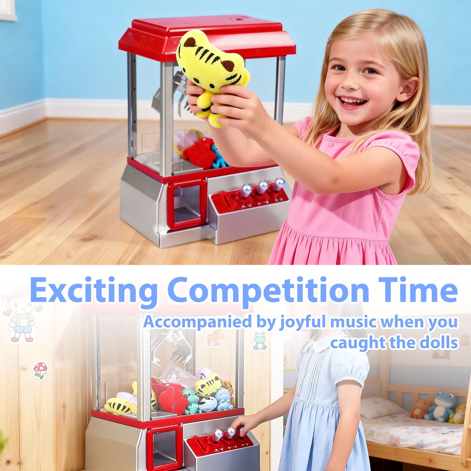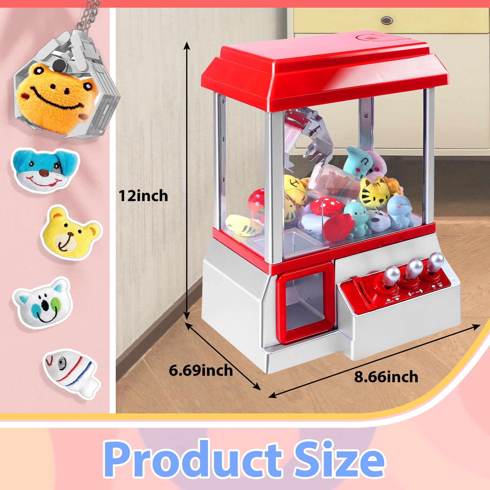 Our product is a great party gathering game. It is great at teaching problem solving skills, as well as hand eye coordination skills, it will keep the children busy for hours. Our claw machine comes with 24 reusable tokens as well as 20 random dolls, only one is required to activate the machine. Our mini candy grabber is not just for parties and gatherings, this item also makes a cool and unique holiday or birthday gift. Share it with friends, family, and even co-workers who have kids. They will love it. Product Size: This doll grabber dimension is 13.8″H x 7.5″W x 10.2″L Package Included: 1*Claw Machine 20*Random Dolls 24*Token Coins Warm Tips: 1. Make sure to put in 3″D” new batteries(Not included). 2. Turned on the switch and insert coin to active. Don’t overfill the claw machine, use light tiny tings. 3. Recommand for 3+age kids.