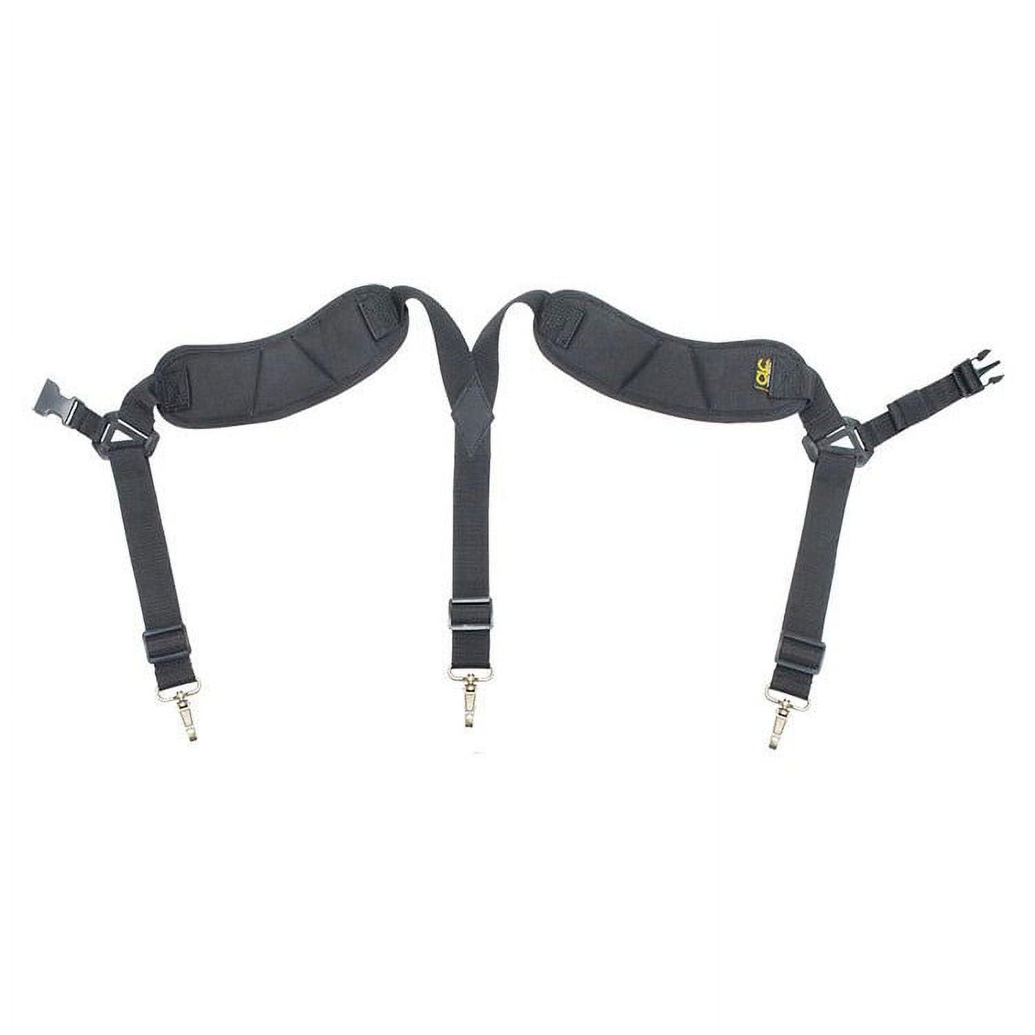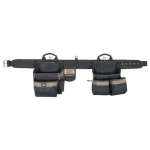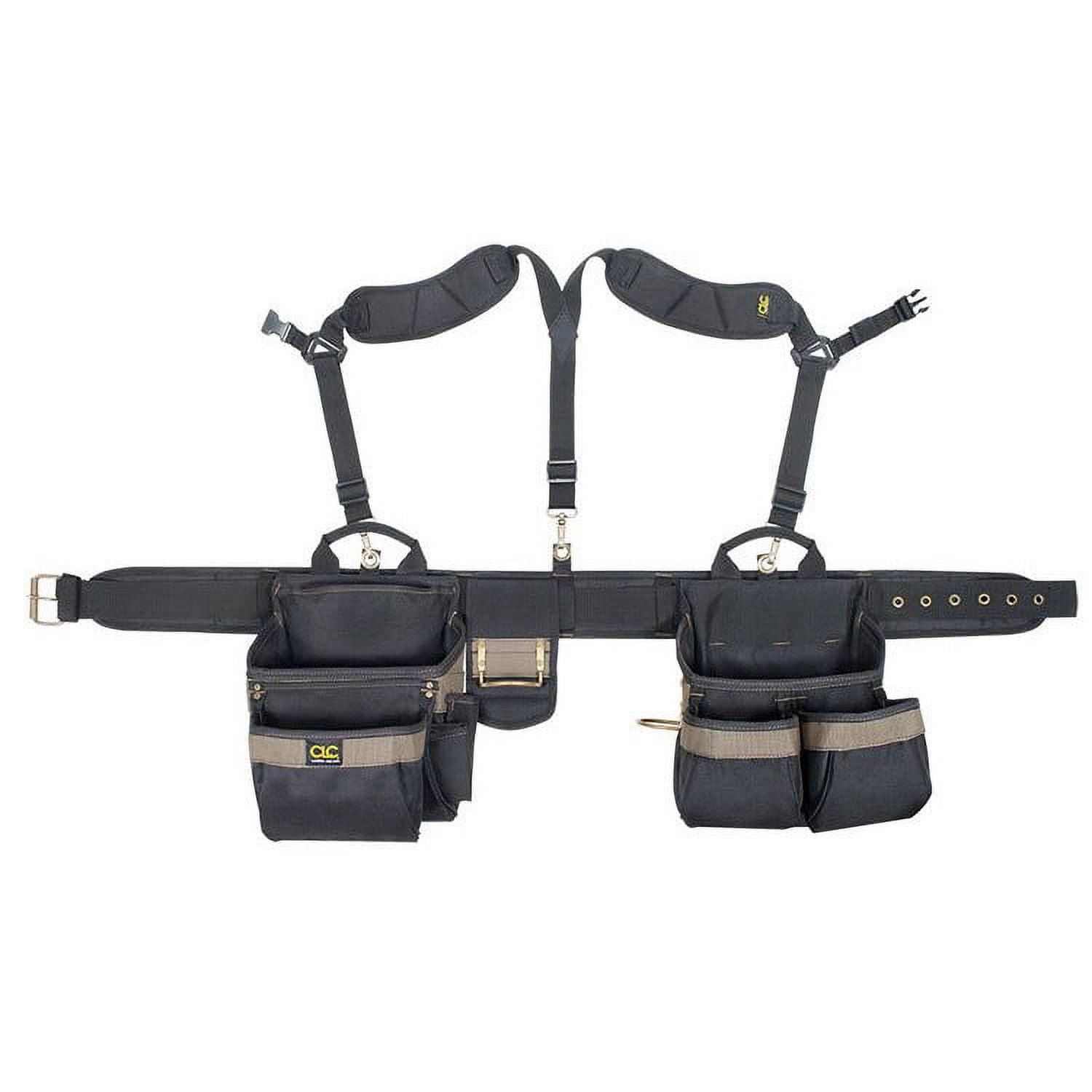 5-piece system. Completely adjustable, padded suspenders engineered to hold and distribute weight comfortably. Double layered 600D polyester fabric. 6 stay-open larger pockets for faster access to contents, 17 smaller pockets for tools. Bottoms of main pockets are triple layered. Complete with metal padded hammer holder for added comfort, a metal tape clip holder and a metal tool holder. Universal adjustable belt fits 32″ to 48″. Number of Pockets: 23 nMaterial: Polyester nWaist Size: 32 In. to 48 In. n WARNING: Cancer and Reproductive Harm – www.P65Warnings.ca.gov., –