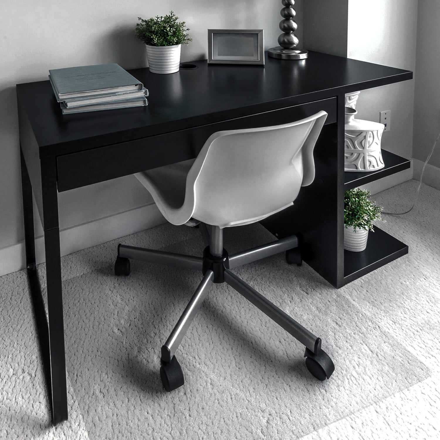 It is common today for most flooring manufacturers to void their warranties unless you use floor protectors; such as chair mats. This is because without protection mats, rolling office chairs damage surfaces by ripping carpet or scratching hard floor Protects hard floors from damage caused by moving chair casters. Sits under any large, medium or small computer desk Made from polycarbonate – an incredibly tough and firm material which will not crack, curl, discolor or smell. Lies flat and stays flat. Chair wheels will not sink into this mat under normal use Lies perfectly flat straight away and has an easy glide surface to help reduce leg fatigue. A perfect protector for vinyl, hardwood, laminate, wood, stone, tiles and concrete flooring, whilst keeping both under and around your desk tidy Environmentally safe.100% recyclable. Child and pet safe Anti-Slip backing suitable for use on polished Hard Floors, Very Low Pile Carpets and Carpet Tiles. Product Size – Rectangular 35 x 47″. Please note that the smooth side of this mat should be face down on the floor for optimum results