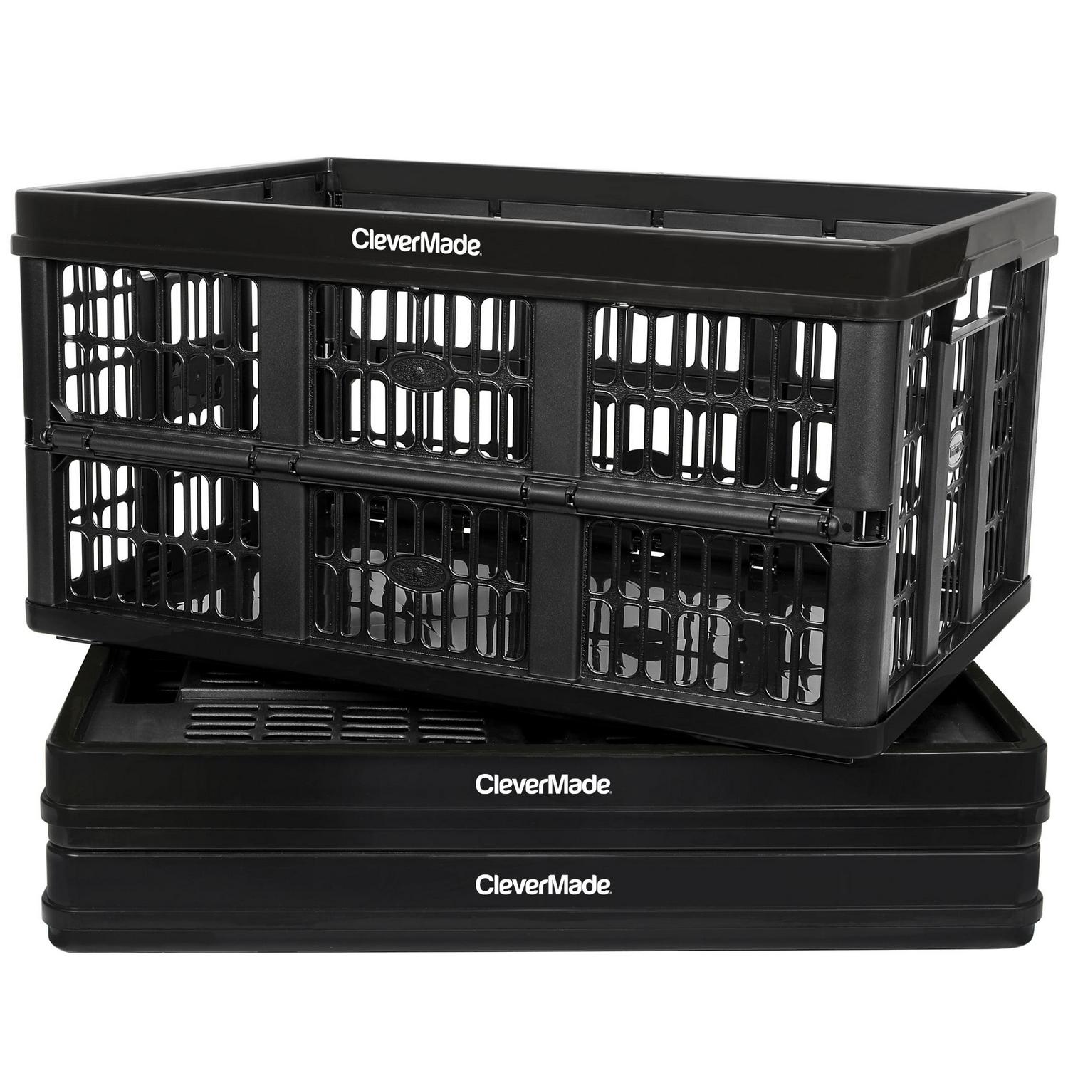 CleverMade Collapsible Grated Utility Crate, 12 Gal, Black, 3 Pack