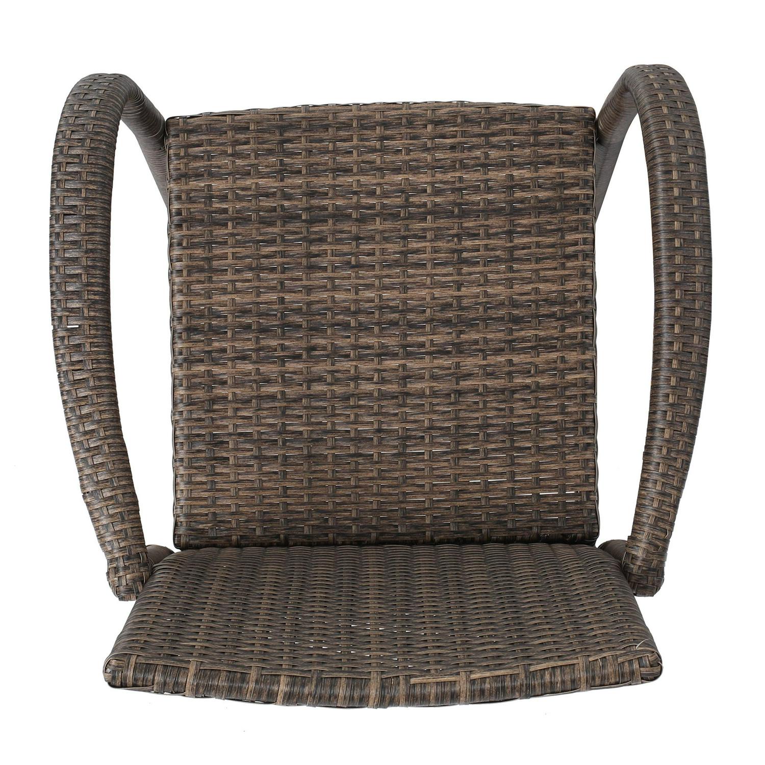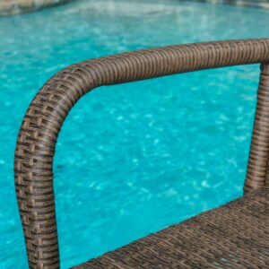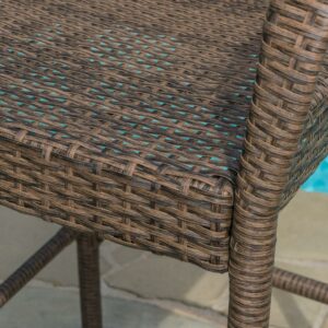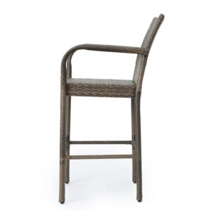 Clevertine Outdoor Wicker Barstool with Iron Frame, Set of 4, Mix Mocha