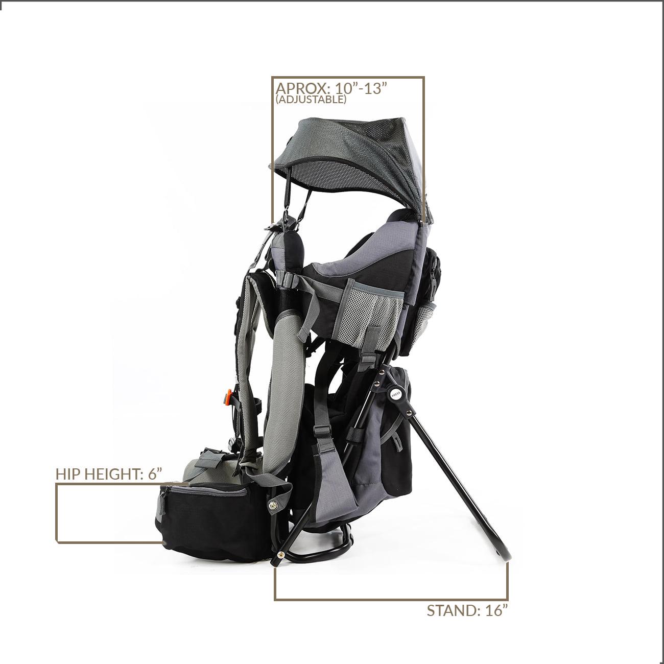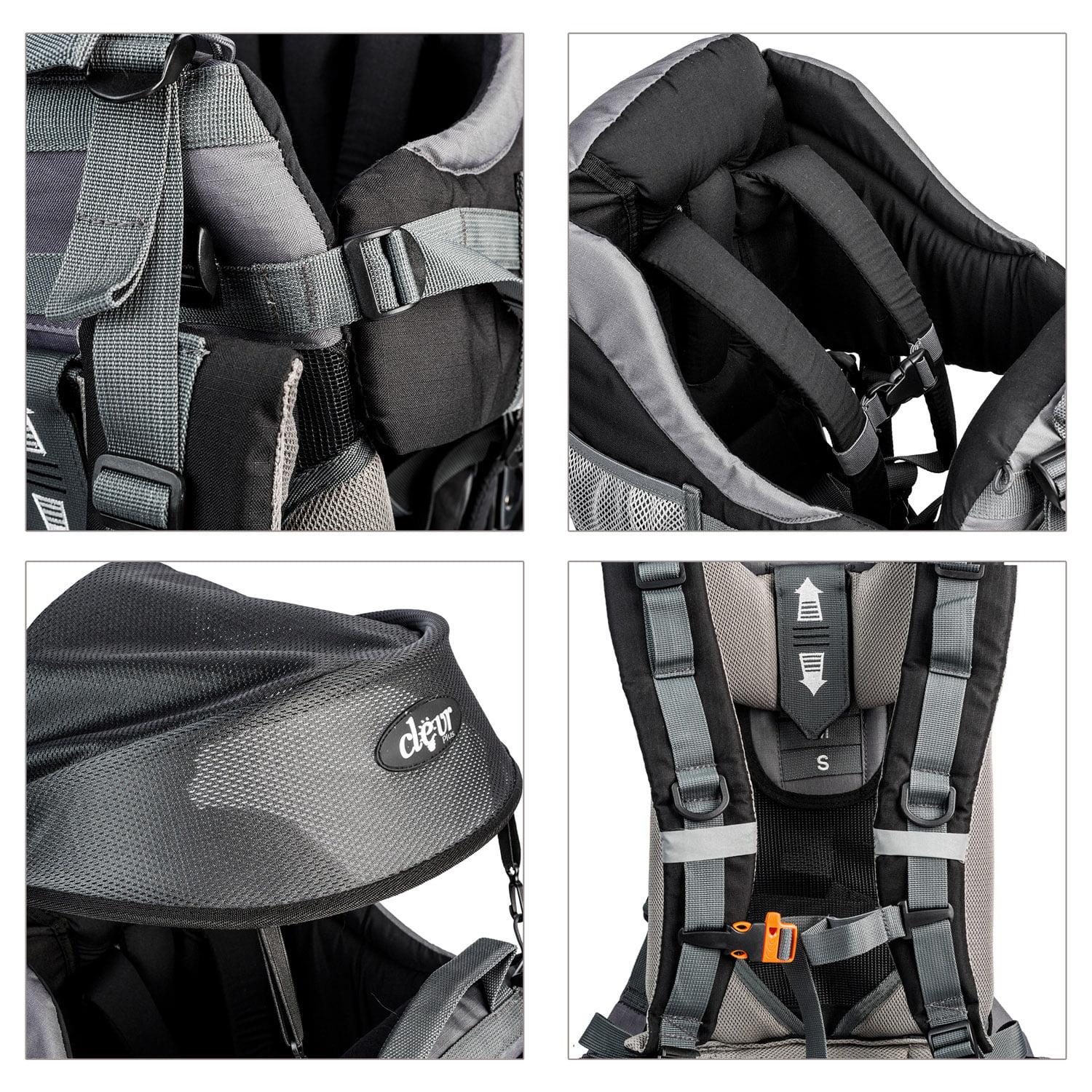 – This child carrier is made of strong and durable aluminum frame with 600d oxford cloth that will provide lasting use and withstand natural elements such as rain or harsh sun